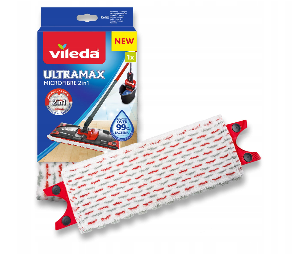 Wkład Vileda Ultramax nadaje się do wielokrotnego utyku. Wkład nadaje się do prania w pralce - można go prać wraz z codziennym praniem w temperaturze do 60°C. Aby zapewnić najlepszą skuteczność czyszczenia, zalecamy wymianę wkładu na nowy co 6 miesięcy.