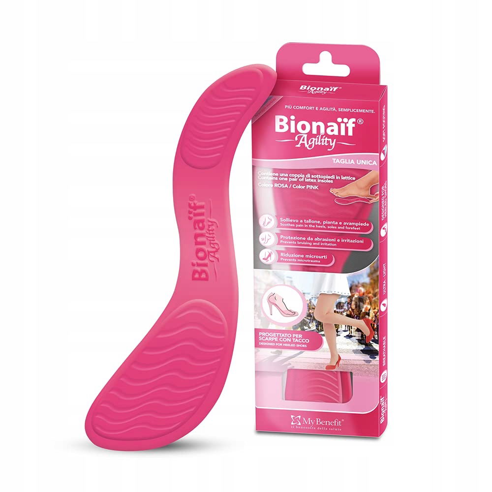 Lateksowa wkładka przeznaczona dla stóp, które są w ciągłym ruchu podczas pracy i wypoczynku. Oddychający i ultralekki, dzięki grubości zaledwie 2 mm nadaje się do wszystkich butów na wysokim obcasie i koturnie, nawet z platformami i szpilkami. Kompozycja z miękkiego lateksu, idealna dla delikatnej skóry, zapewnia miękkie podparcie, kontrastuje z podrażnieniami, otarciami i zastojami wilgoci, utrzymując stopę świeżą i suchą. Wyposażona w antypoślizgowe, antybakteryjne i masujące wyżłobienia, łagodzi dyskomfort i ból pięty, podeszwy i przodostopia spowodowane wysokimi obcasami. Redukuje mikrouderzenia. Samoprzylepna. Dostępny w kolorze fuksji i czerni oraz w podwójnym opakowaniu.