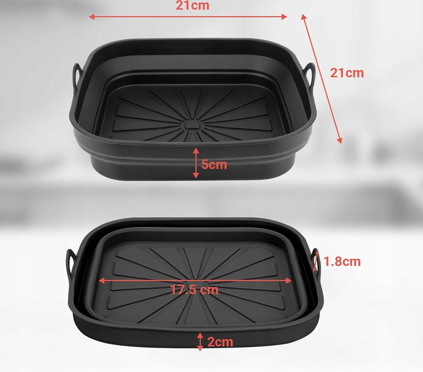 ⭐ UNIWERSALNE ZASTOSOWANIE – PASUJE DO WIĘKSZOŚCI AIR FRYERÓW:Klasyczny kształt i wymiary (Kod producenta 21x5 prawdopodobnie oznacza 21 cm x 5 cm) sprawiają, że wkładka pasuje do większości standardowych frytkownic beztłuszczowych dostępnych na rynku. Może być również używana w tradycyjnych piekarnikach i kuchenkach mikrofalowych.