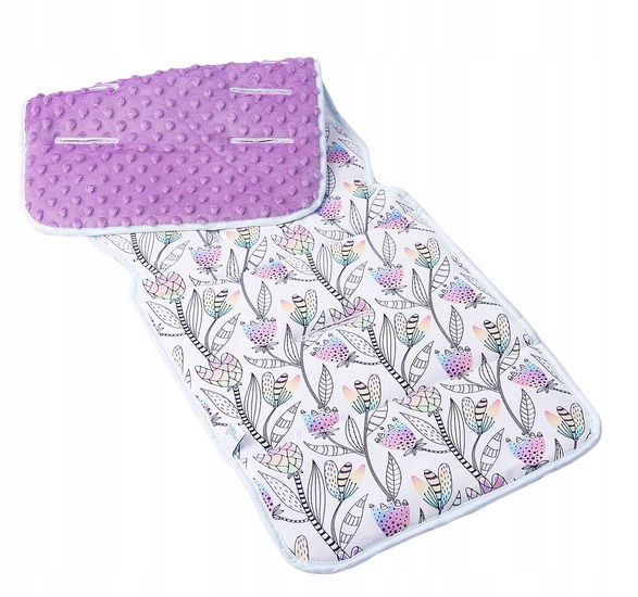 Dwustronna wkładka przeznaczona jest na siedzisko wózka spacerowego. Wkładka wyposażona jest w 9 uniwersalnych otworów na pasy bezpieczeństwa na różnej wysokości, dzięki czemu pasuje do większości wózków spacerowych dostępnych na rynku. Zabezpiecza przed otarciami oraz niekorzystnym wpływem sztucznej tkaniny wózka na skórę dziecka. Wkładka do wózka poprawi komfort podróżowania dzięki miękkiemu wypełnieniu i zmniejszaniu wstrząsów podczas jazdy. Zabezpieczy również poszycie siedzenia przed zabrudzeniami. Sprawdza się znakomicie podczas długich spacerów zarówno w cieplejsze jak i chłodniejsze dni zapewniając przyjemną podróż maluszkowi. Kształt wkładki został zaprojektowany w sposób, który umożliwia jej łatwe i szybkie zamontowanie. Wkładka jest dwustronna - z jednej strony wzorzysta, z drugiej jednokolorowa.
