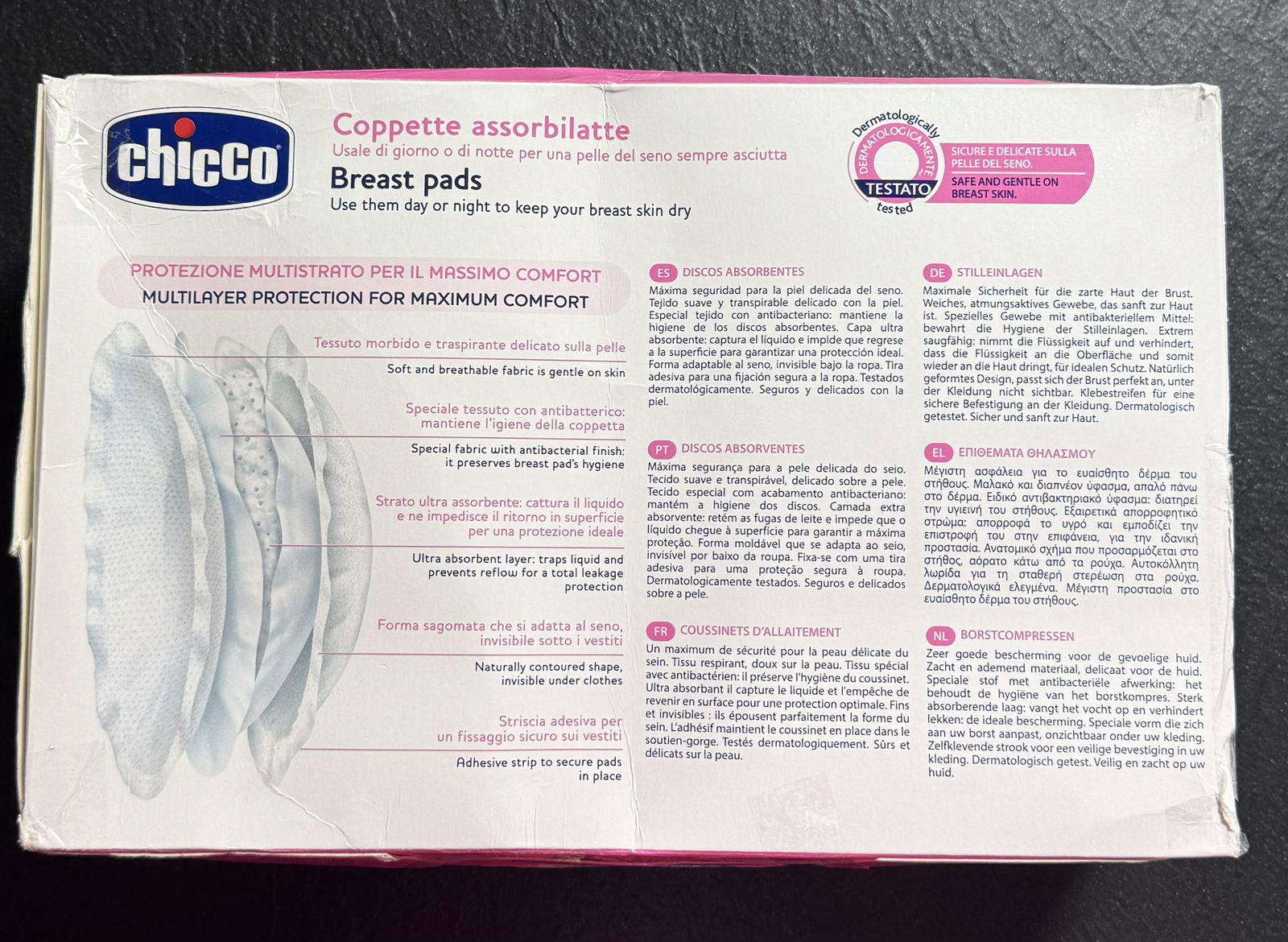 Antybakteryjne wkładki laktacyjne Chicco zapewniają maksymalne bezpieczeństwo podczas całego okresu karmienia piersią.