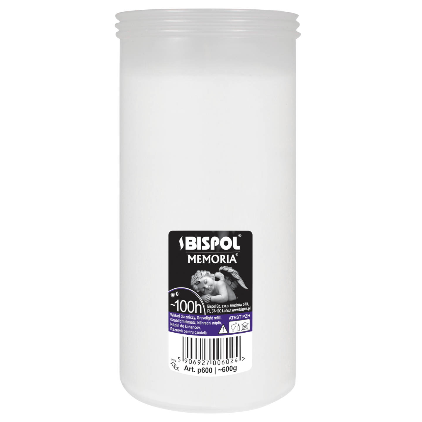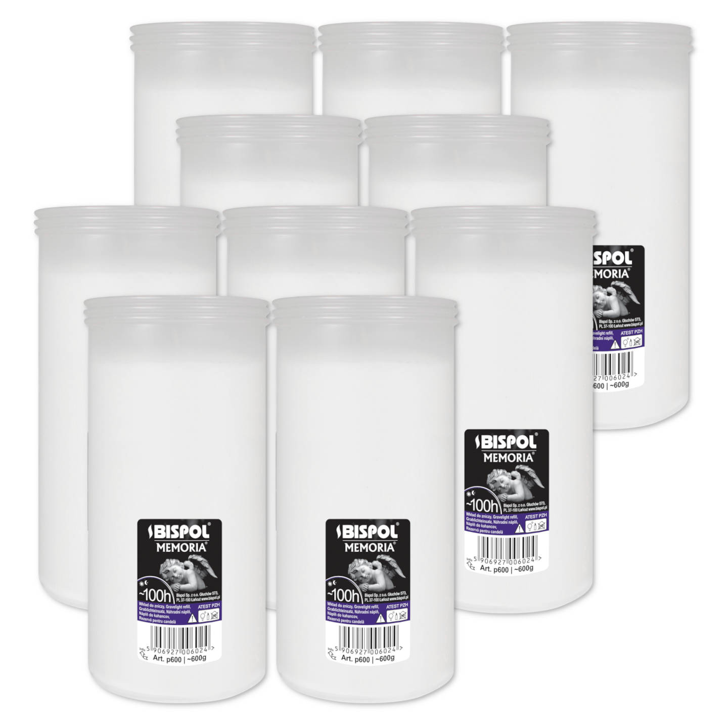 Wkłady do zniczy parafinowe Bispol P600 100h 10 sztuk