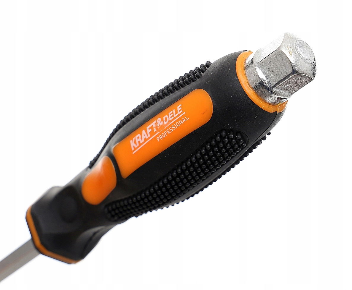 Wkrętak zakończony specjalnie wzmocnioną metalową skuwką do pobijania. Jej 6 kątny kształt umożliwia przytrzymanie wkrętaka przy pobijaniu. Dodatkowo przy użyciu klucza znacząco zwiększamy siłę odkręcania.