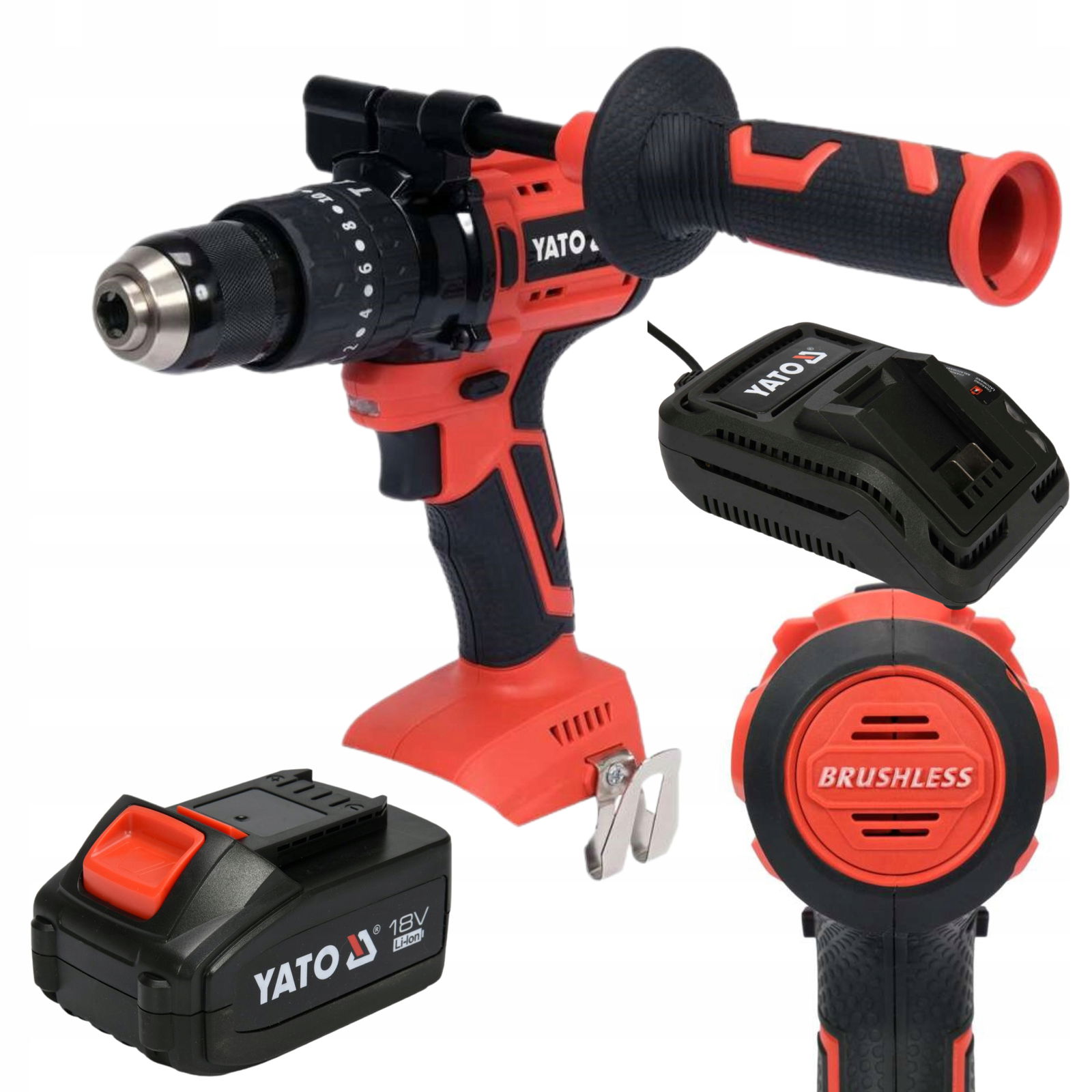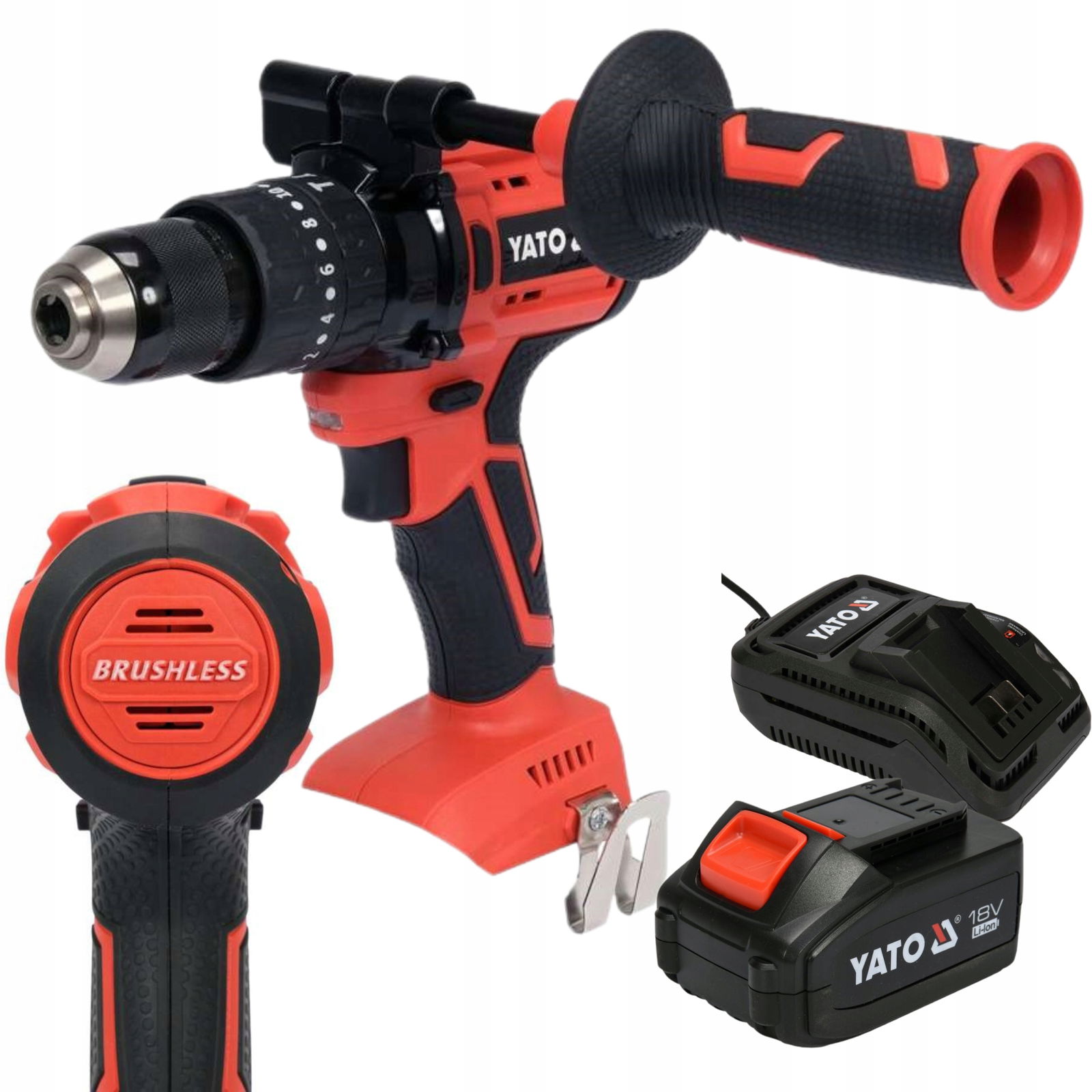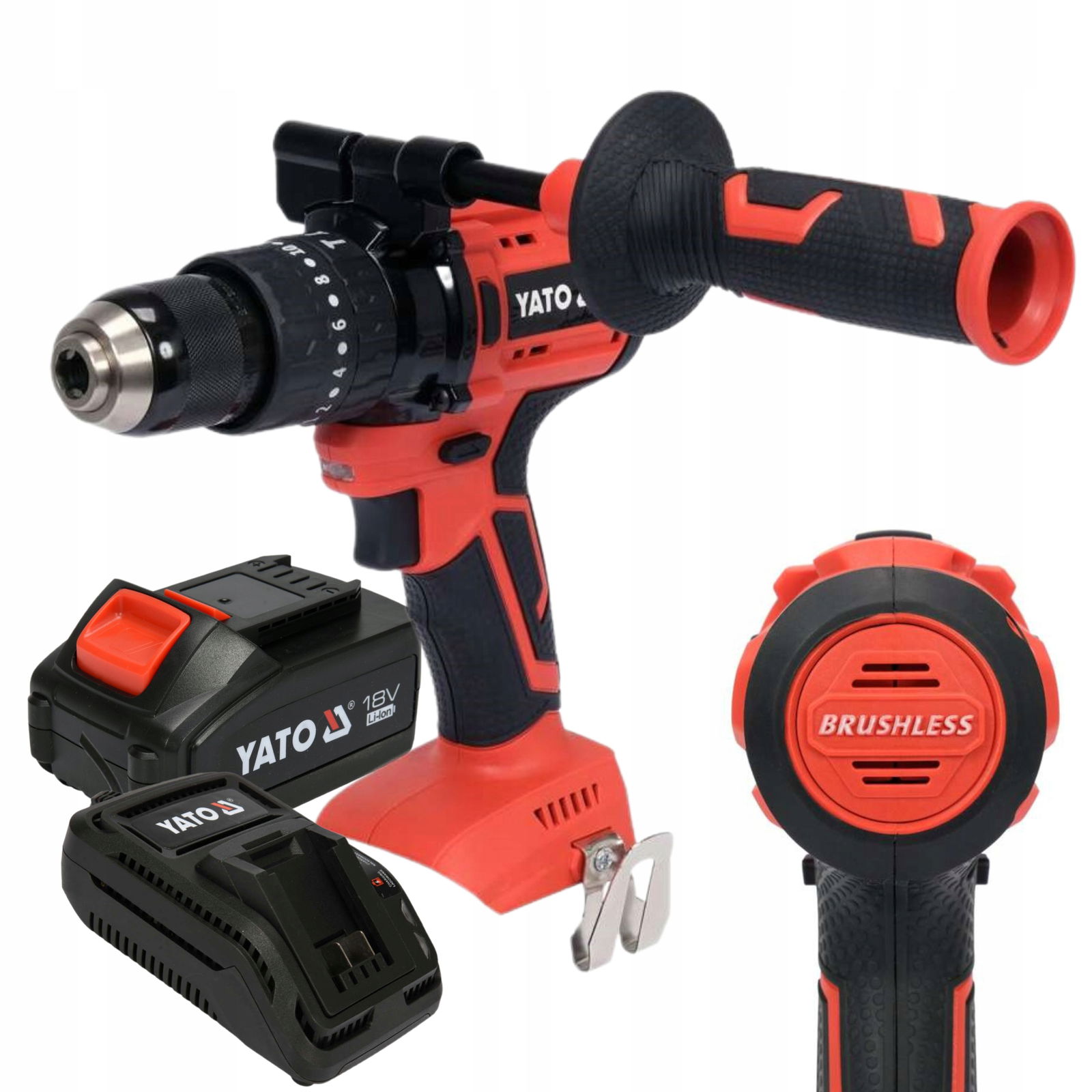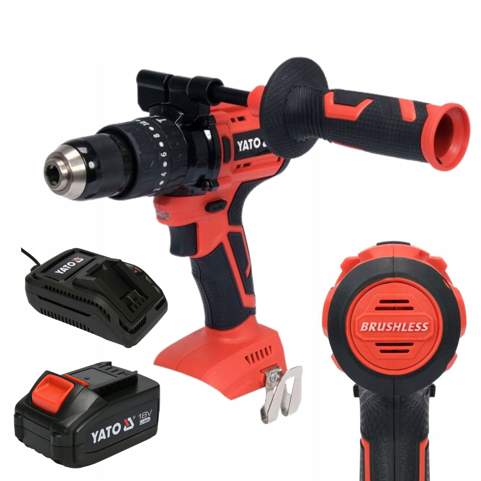 Metalowy uchwyt samozaciskowy 13 mm pewnie trzyma wiertło podczas pracy z funkcją udaru, jak i wiertło choinkowe podczas wiercenia w metalu. Boczny uchwyt poprawia ergonomię i jakość pracy użytkownika.