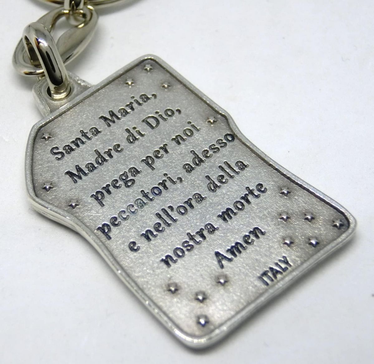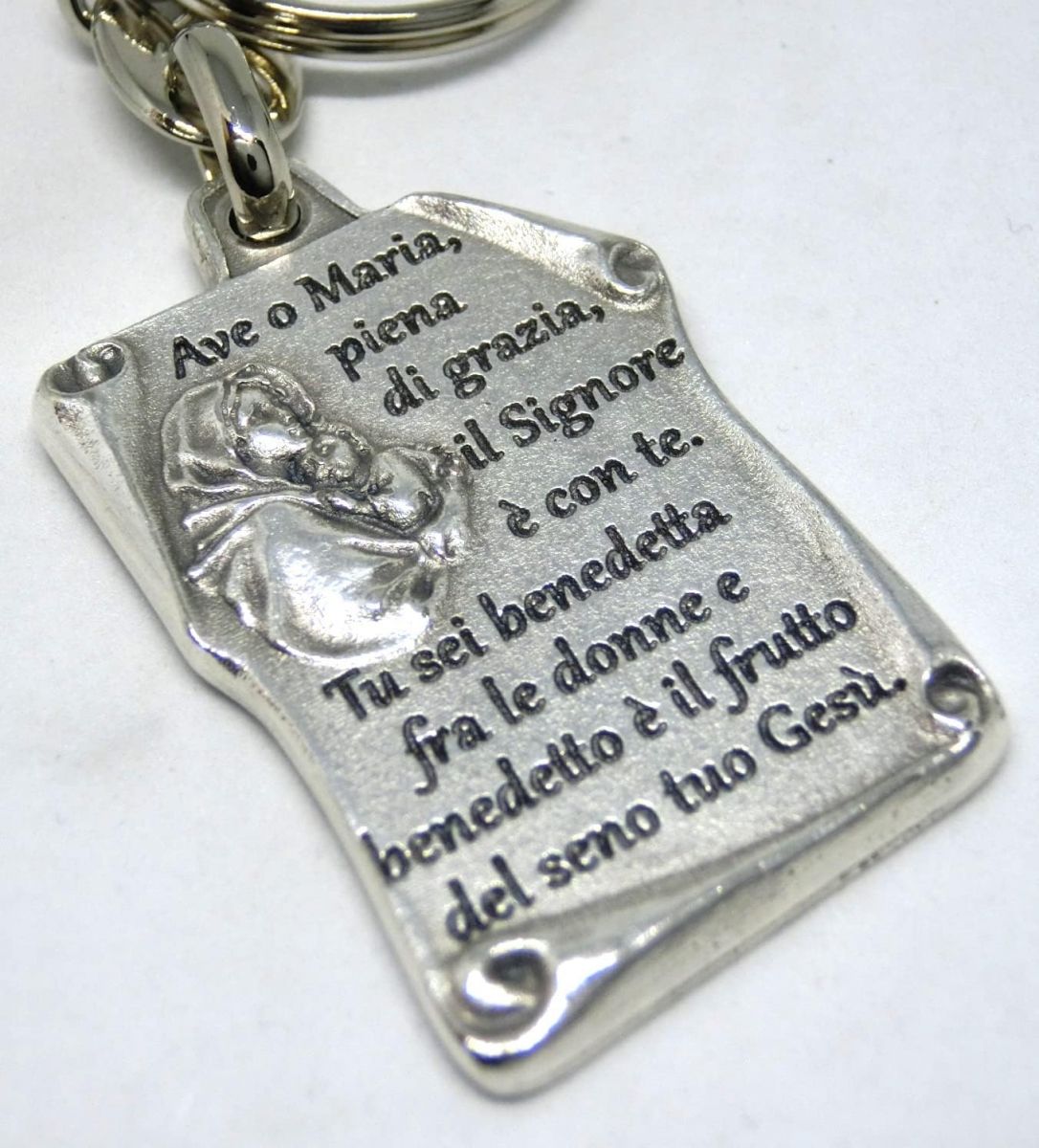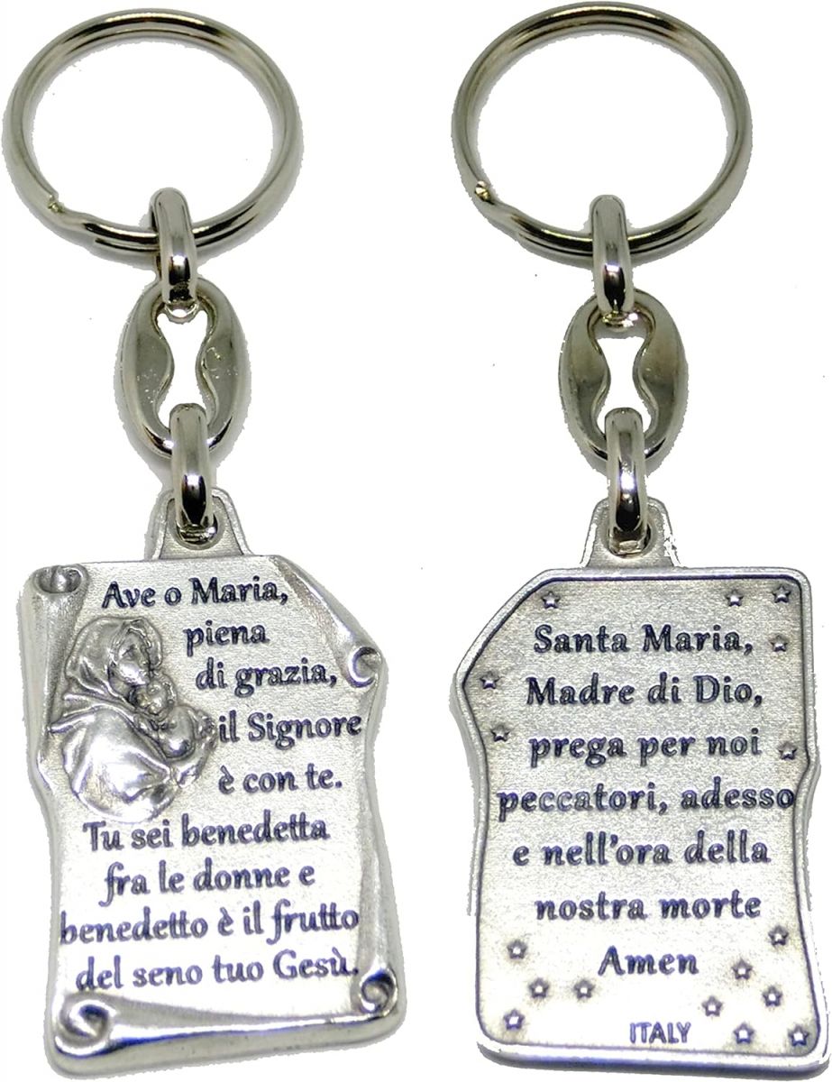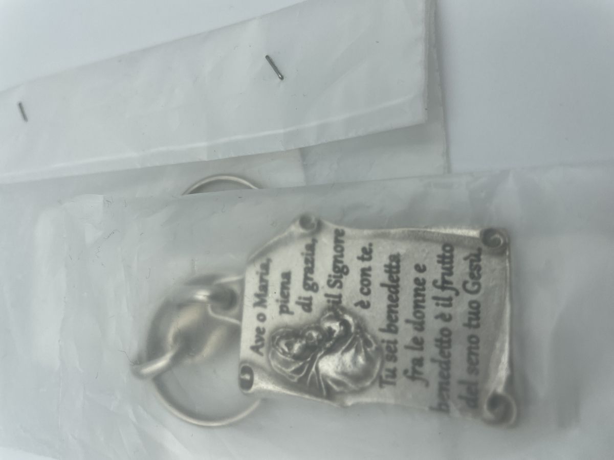 Brelok do kluczy Ave z koralikami modlitewnymi Madonna Ave Maria posrebrzany, z Włoch