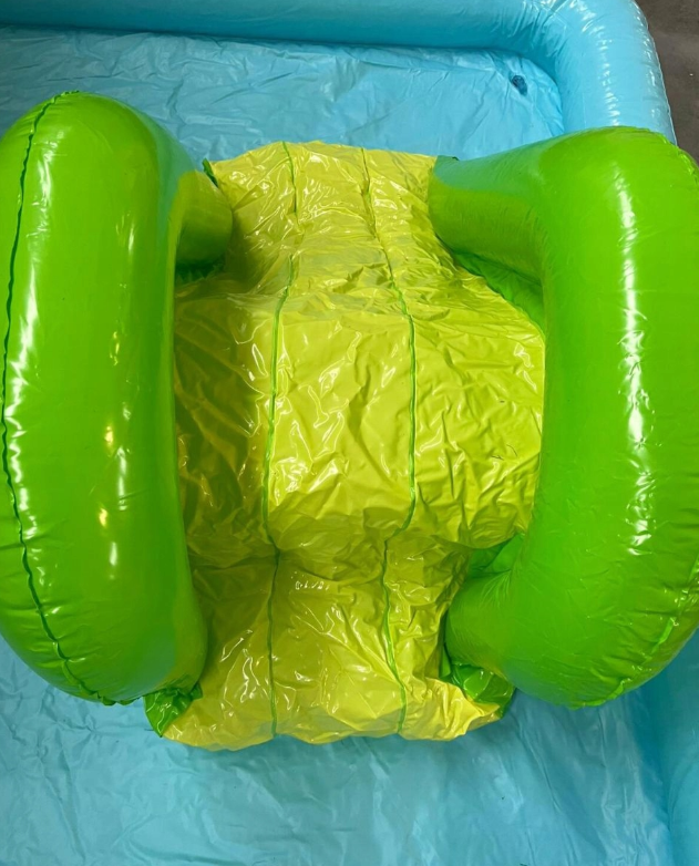 Głównymi atrakcjami są w tym przypadku wyjmowana dmuchana zjeżdżalnia z miękką powierzchnią która zamortyzuje zjazd oraz palma, z której po podłączeniu do węża ogrodowego będzie lała się woda.