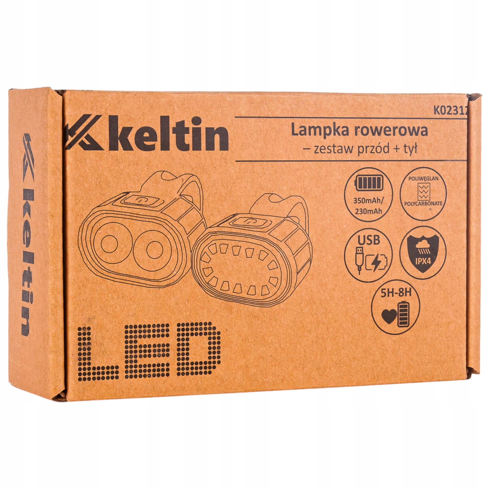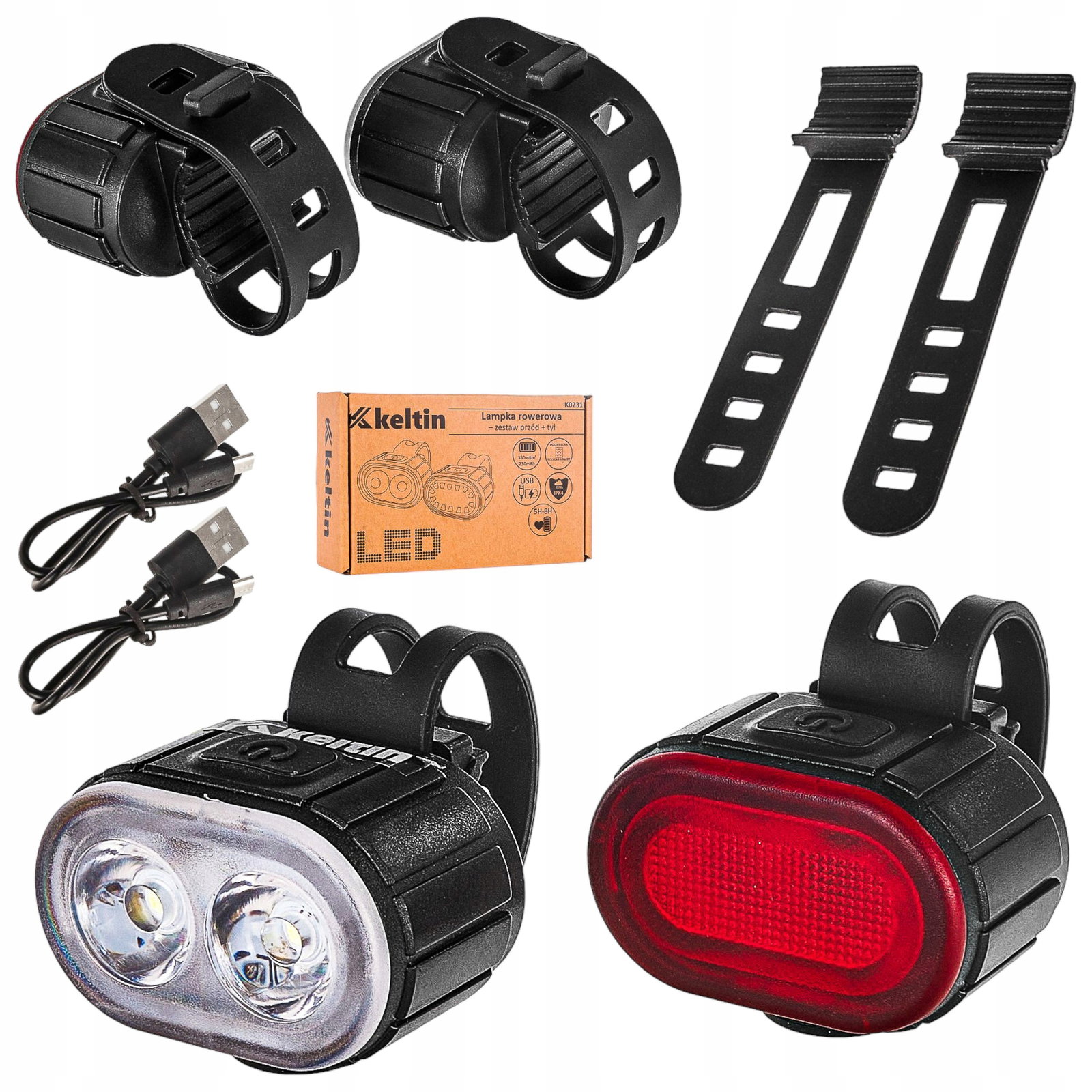 Lampka rowerowa wodoodporna USB IPX7 zestaw przód + tył Keltin