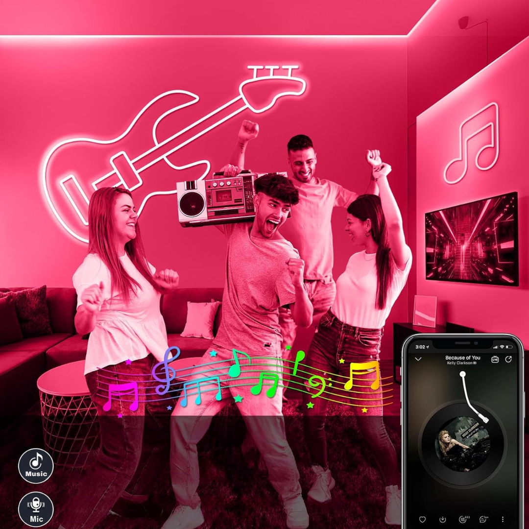 - Funkcja synchronizacji z muzyką: światło i częstotliwość zmieniają się w rytm otaczających dźwięków. Idealne dla graczy i streamerów, te elastyczne światła neonowe oferują pełną personalizację, dostosowaną do indywidualnego stylu.
