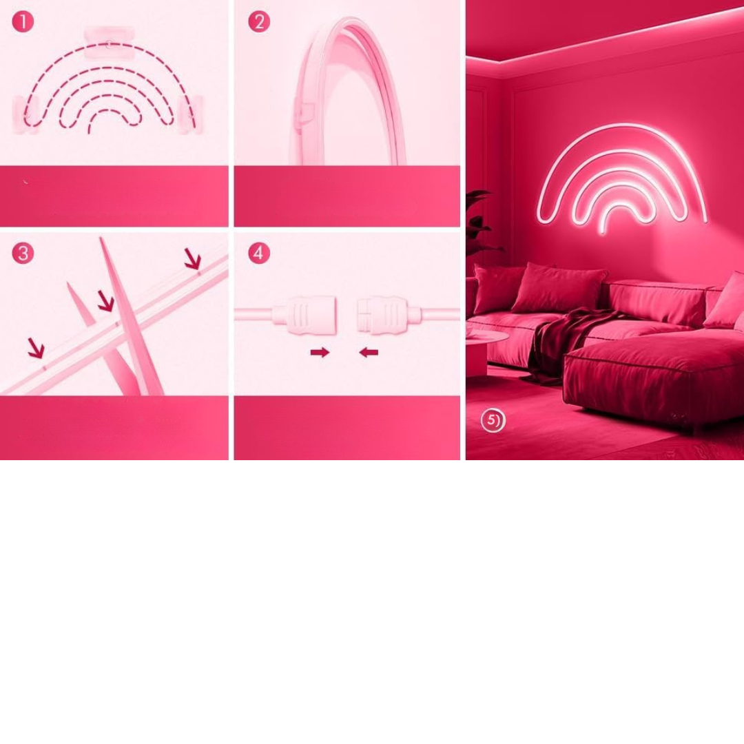 - Wszechstronność i elastyczność: taśma neonowa cechuje się wyjątkową elastycznością, umożliwiającą łatwe formowanie dowolnych kształtów i wzorów oraz przycinanie do potrzebnej długości. Doskonale sprawdza się przy tworzeniu własnych neonowych napisów DIY lub jako kolorowy akcent w różnych przestrzeniach — idealna na imprezy, do barów oraz do dekoracji wnętrz.