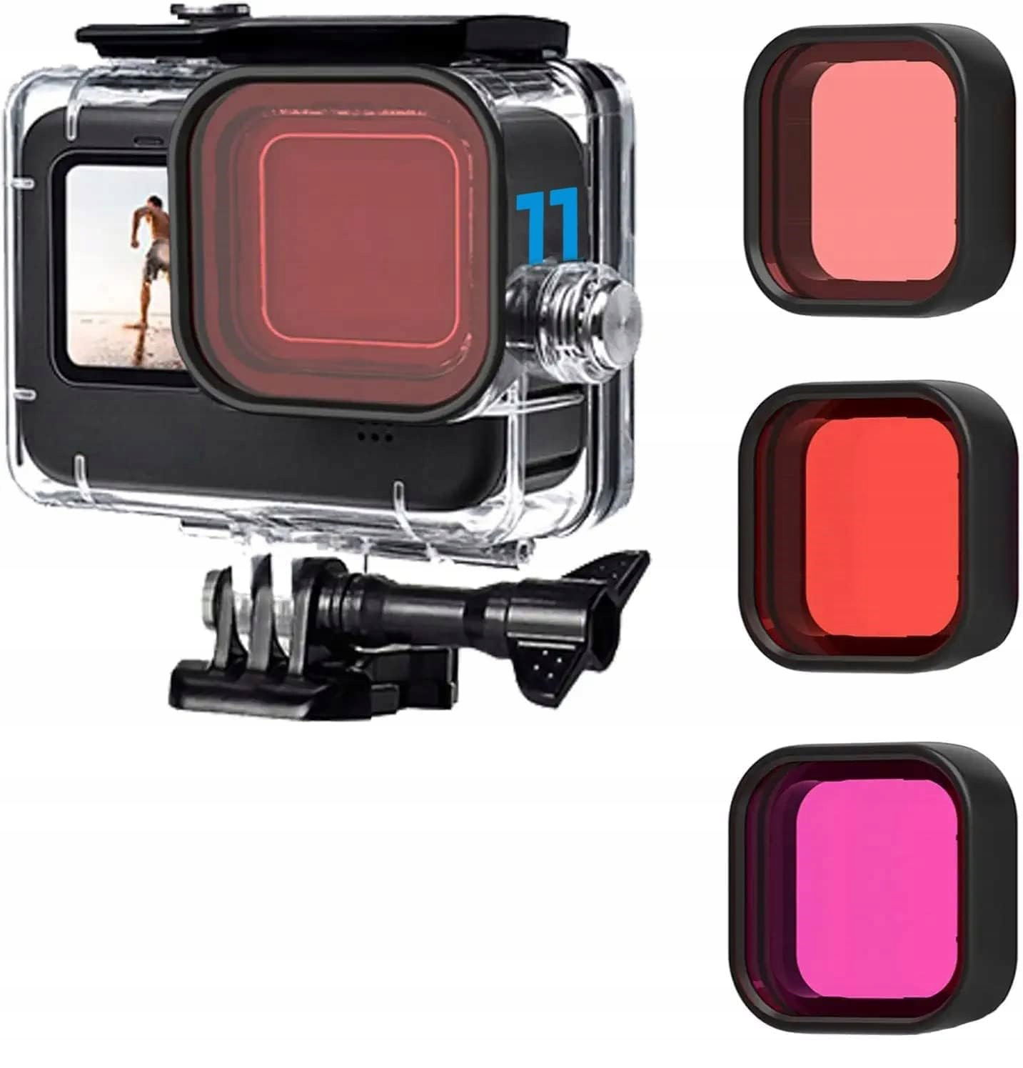 3 filtry nurkowe:Jasnoczerwony (do 4,6 m wody niebieskiej/czystej słodkiej),Czerwony (do 25,9 m wody tropikalnej/niebieskiej),Magenta (do 21,3 m wody zielonej/słodkiej).