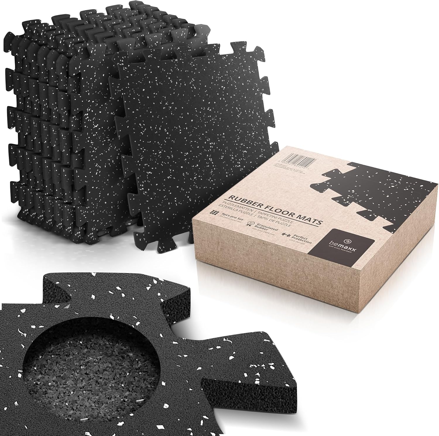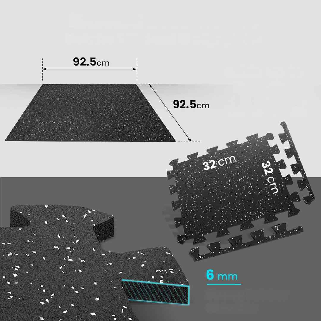 - Zastosowanie: zestaw służy do zabezpieczania podłogi przed uszkodzeniami mechanicznymi, tłumienia hałasu i wibracji oraz zapewnienia stabilnej, antypoślizgowej powierzchni podczas ćwiczeń, zabawy lub pracy ze sprzętem sportowym i ciężkim wyposażeniem.