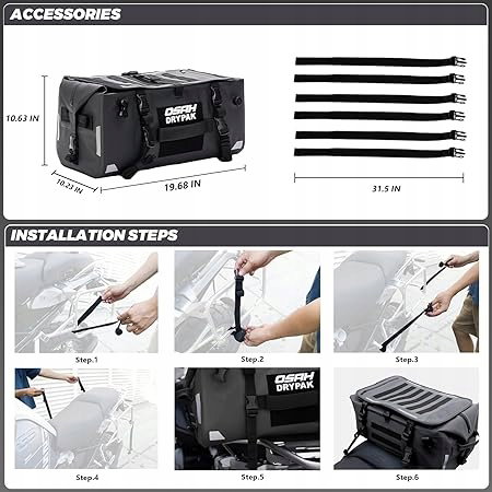 Przyjazna dla użytkownika konstrukcja: nie ma potrzeby mocowania dodatkowego paska na ramię do przenoszenia, nasza torba motocyklowa ma dwa wbudowane przenośne paski na ramię, które ułatwiają przenoszenie. Na górze torby znajduje się elastyczna taśma ułatwiająca przenoszenie lub wieszanie przedmiotów.