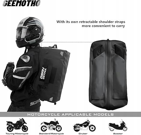 Wodoodporna Torba Motocyklowa 40L - Podróżna Torba Bagażowa z Paskami na Ramię (Czarny)
