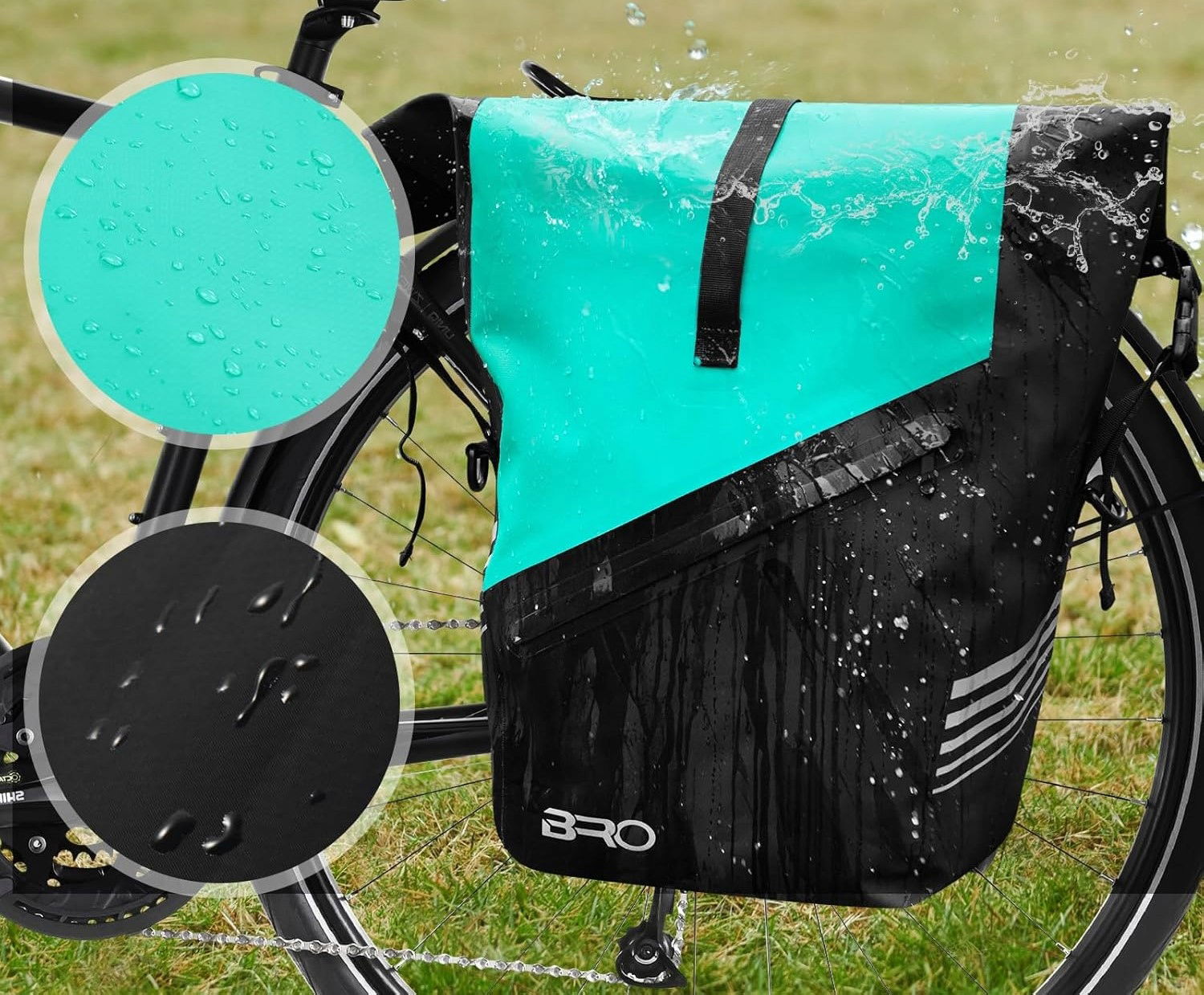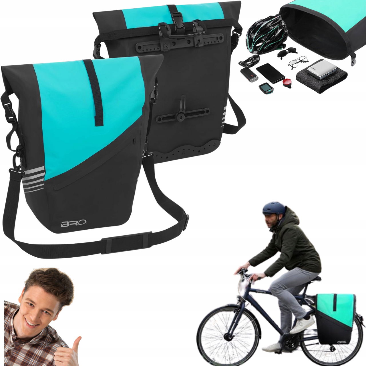 Wodoodporna torba na rower z uchwytem i paskiem na ramię 25-29L miętowa BRO