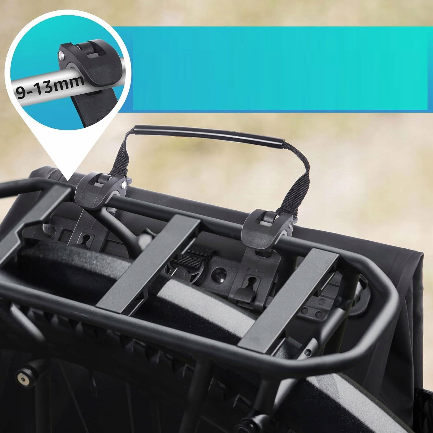 ✅ Regulowane klipy mocujące pasują do większości bagażników rowerowych o średnicy rur 9-13 mm.