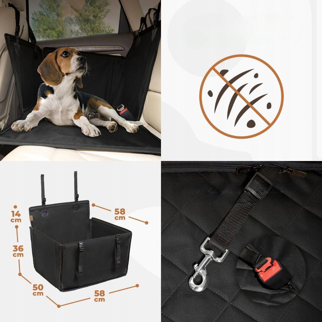 - Zastosowanie: siedzisko wykorzystywane jest podczas podróży samochodem w celu zapewnienia psu bezpiecznej przestrzeni oraz ograniczenia jego przemieszczania się w trakcie jazdy. Sprawdza się na co dzień, podczas wizyt u weterynarza, wyjazdów weekendowych lub dłuższych tras, pomagając utrzymać porządek w aucie. Może być używane regularnie jako element wyposażenia samochodu, zapewniając większą stabilność, ochronę wnętrza pojazdu oraz komfort podróżowania dla zwierzęcia.