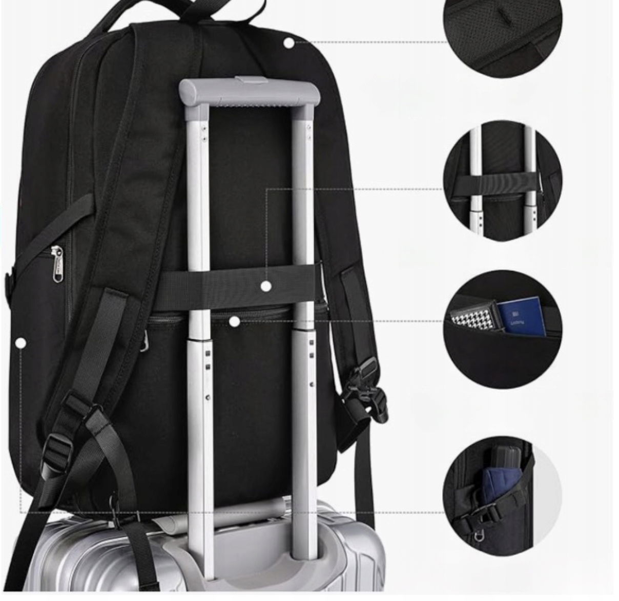 Plecak podróżny z paskiem bagażowym umożliwia ściągnięcie walizki jedną ręką, idealna do pracy, podróży służbowej, weekendowych wycieczek i codziennego użytku.