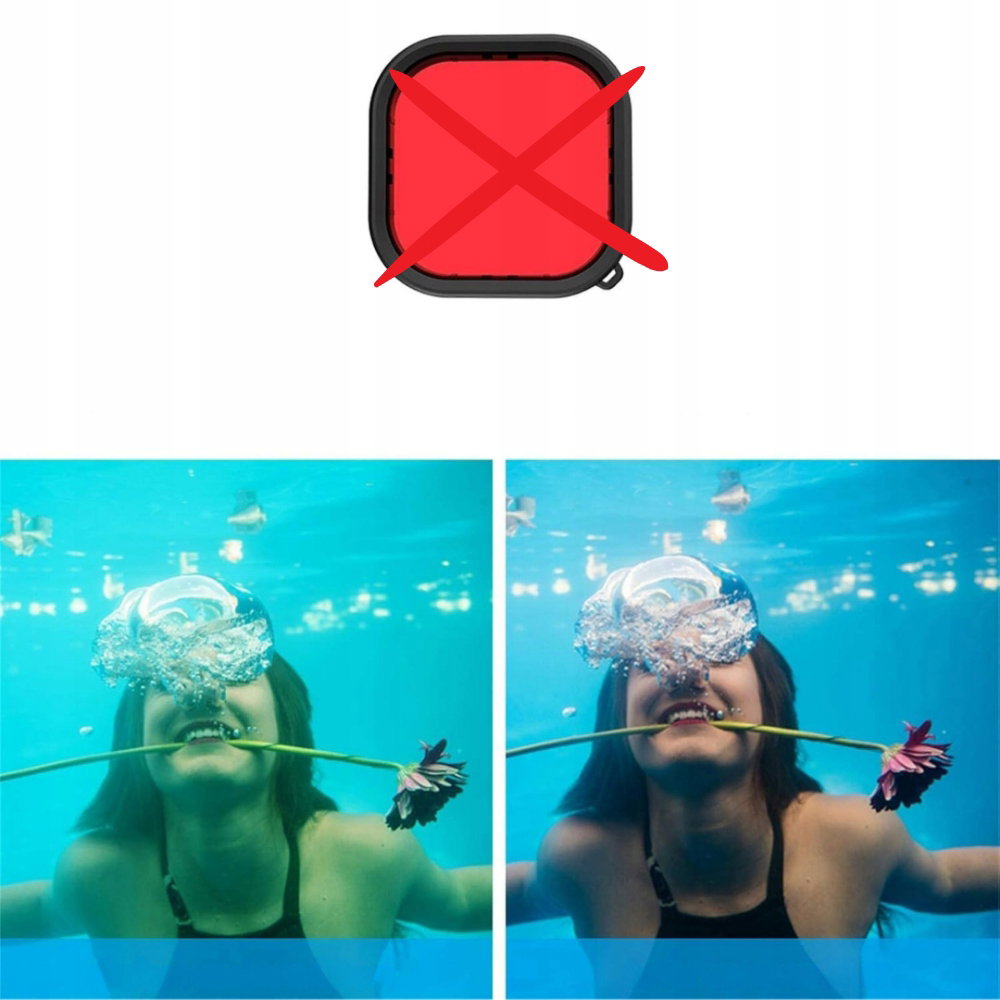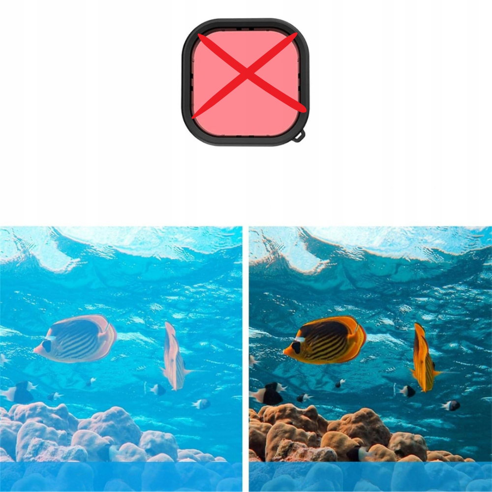 - Produkt powystawowy, nowy, ZESTAW BEZ 3 kolorowych filtrów do nurkowania.