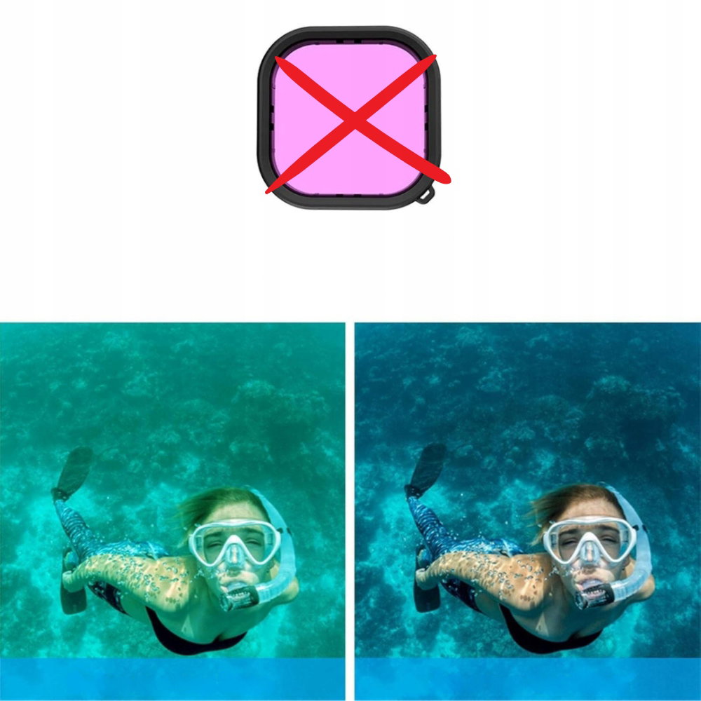 - Produkt powystawowy, nowy, ZESTAW BEZ 3 kolorowych filtrów do nurkowania.