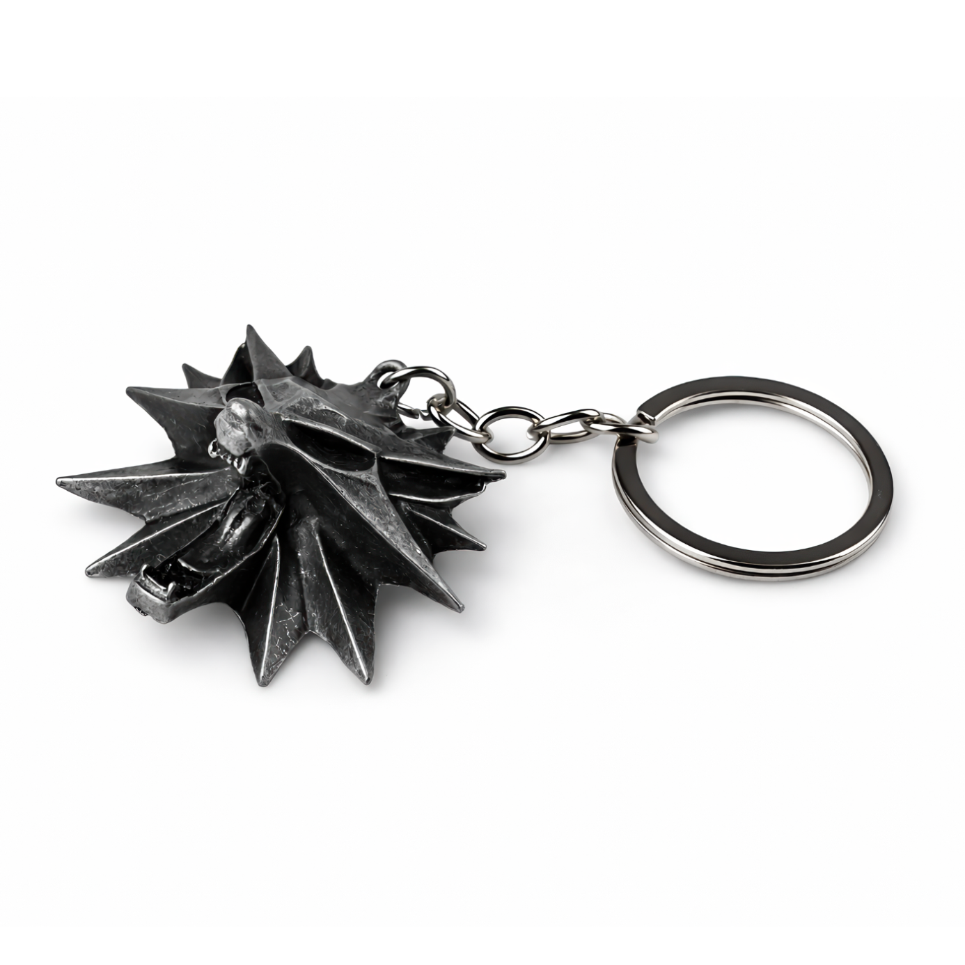 Gdy wiatr robi się zimny, a w powietrzu czuć kłopoty, znak Wilka to dokładnie to, co chcesz mieć przy sobie—ten Wolf Medallion dorzuca ten charakterystyczny „wiedźmiński” klimat do Twojego EDC. To 6 cm brelok, czyli mały, ale konkretny akcent na kluczach, plecaku albo przy cosplayu—bez przesady, za to z mocnym efektem. Medalion ma ciemny, „gunmetalowy” odcień z lekkim, przytartym wyglądem stali i ładnie łapie światło na ostrych, fasetowanych krawędziach. W centrum jest groźna wilcza głowa: głęboko osadzone, kanciaste oczy, wyraźny pysk i otwarta paszcza z dopracowanym reliefem, a dookoła rozchodzą się długie, kolczaste „promienie”, które robią mocną, gwiaździstą sylwetkę. Solidne ogniwka łańcuszka i gładkie kółko do kluczy są praktyczne na co dzień, a metalowe wykończenie sprawia, że całość czuje się naprawdę „premium” w dłoni. To fajny, rozpoznawalny ukłon w stronę medalionu Szkoły Wilka znanego z uniwersum Wiedźmina—idealny dla fanów, którzy lubią rzeczy surowe, konkretne i od razu czytelne. Przypnij i noś ze sobą—gotowy do kolekcji albo na prezent dla kogoś, kto ma w sercu szlak.