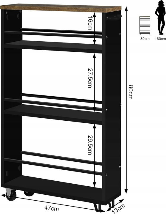 Potrzebujesz więcej miejsca w kuchni lub salonie, ale masz ograniczoną przestrzeń? Wózek kuchenny WOLTU 3-poziomowy to rozwiązanie stworzone dla Ciebie! Dzięki wąskiej konstrukcji (13 cm szerokości) świetnie sprawdzi się nawet w najmniejszych wnękach – między szafą a ścianą, lodówką czy kanapą.
