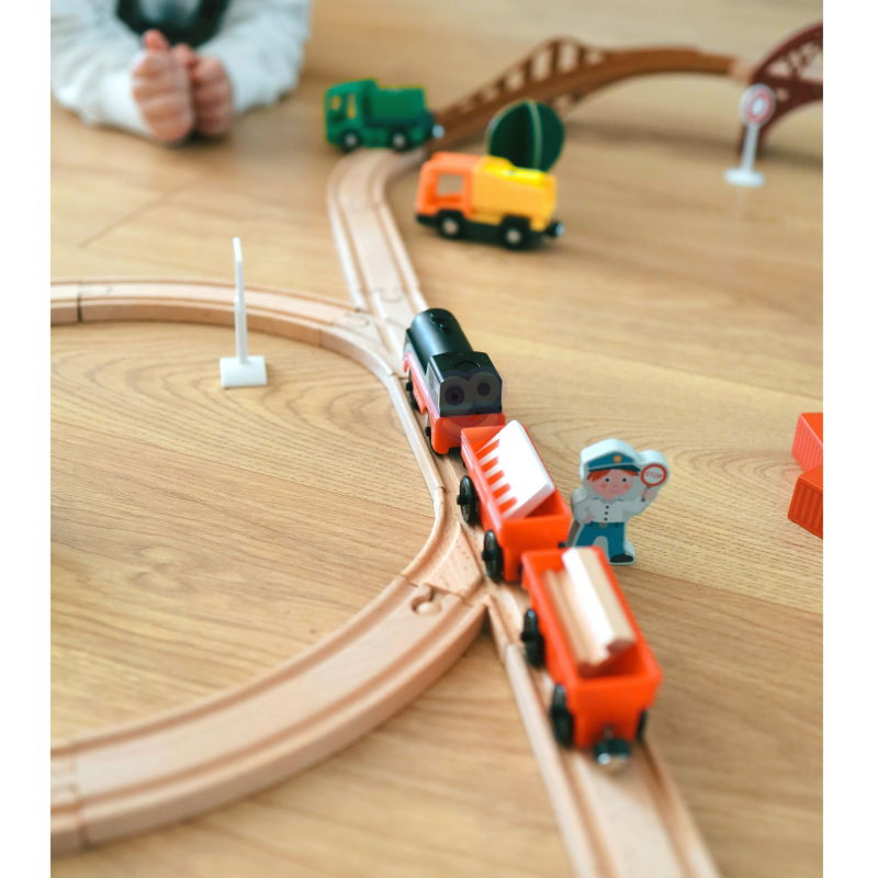 - Pociąg pasuje do większości torów drewnianych znanych producentów np: Brico, IKEA, Little Steps, ELC, Woodyland, Tesco, Carousel, Eichhorn itp. (szerokość toru - 4 cm, szerokość ośi 2,5cm)