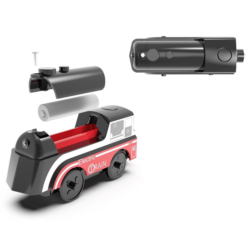 - Elektryczna lokomotywa poruszająca się po torach, napędzana bateriami (1x AAA, brak w zestawie)