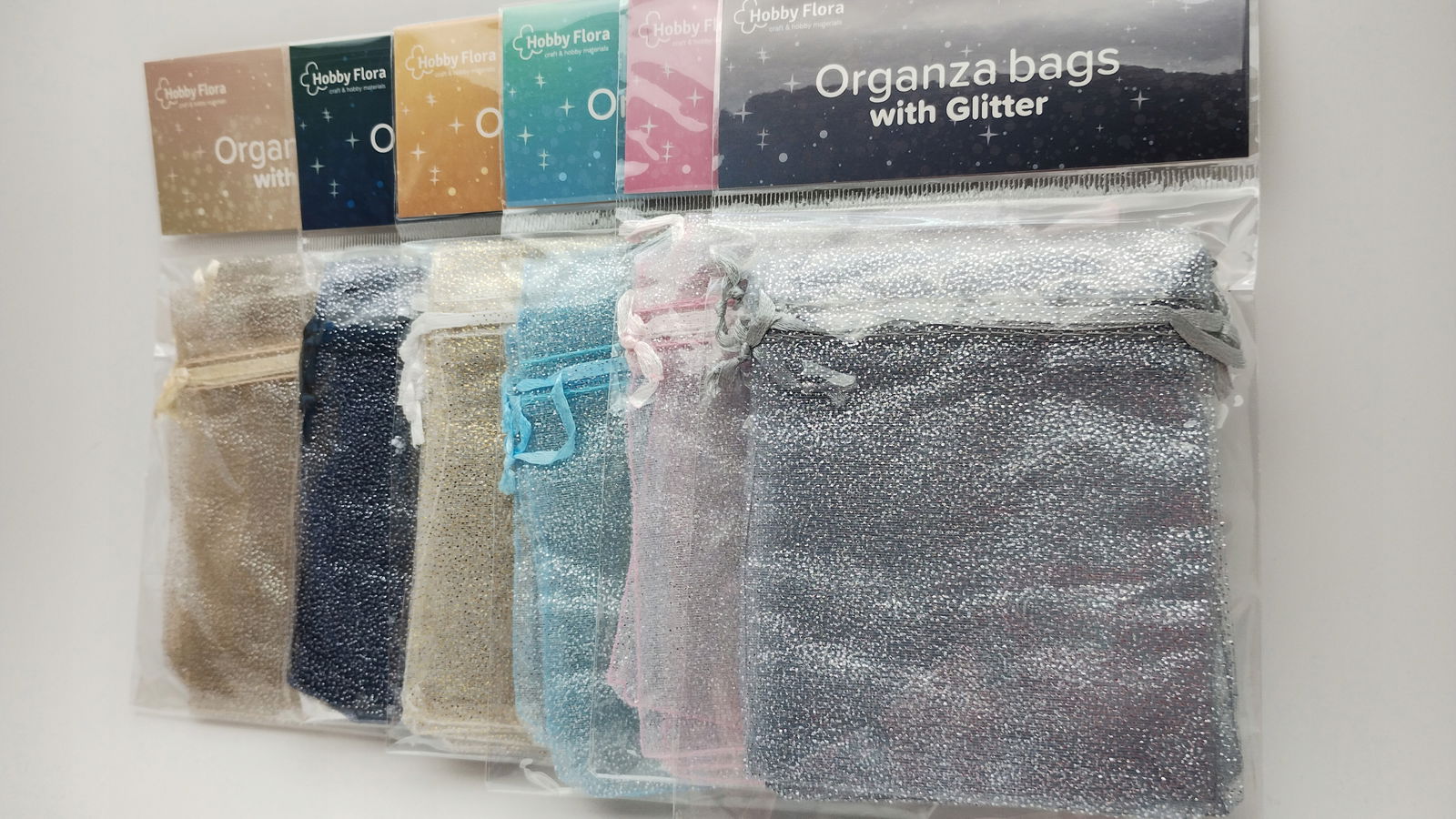Woreczki z organzy Hobby Flora brokatowe Beżowe