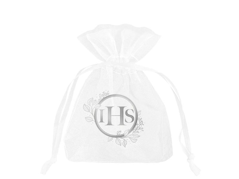 Woreczki na np. cukierki jako podziękowanie za przybycie na uroczystość Komunii Świętej. W opakowaniu znajduję się 10 szt. sygnowanych srebrnym nadrukiem woreczków.