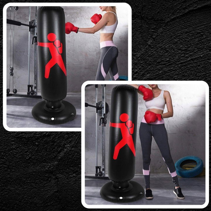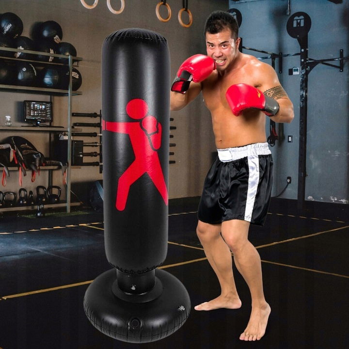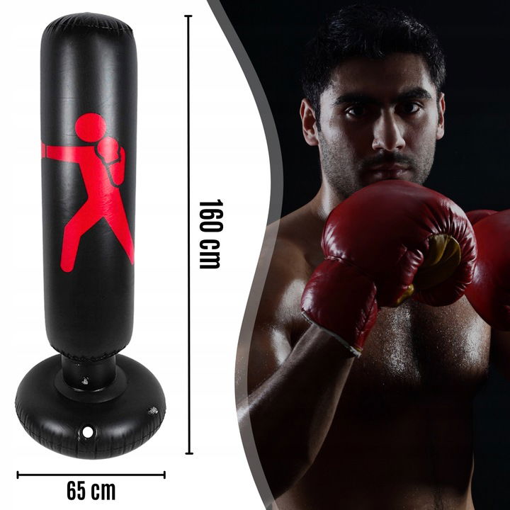 Średnica 65 cm + możliwość dociążenia wodą lub piaskiem (piasek = większa stabilność) — worek nie przewraca się w trakcie zabawy.