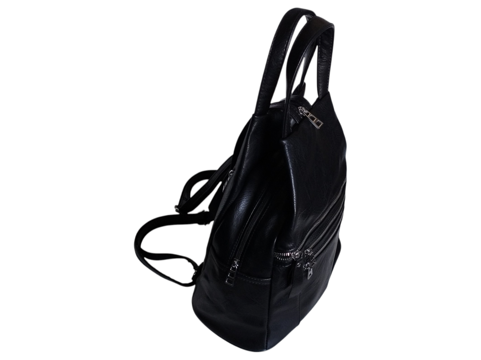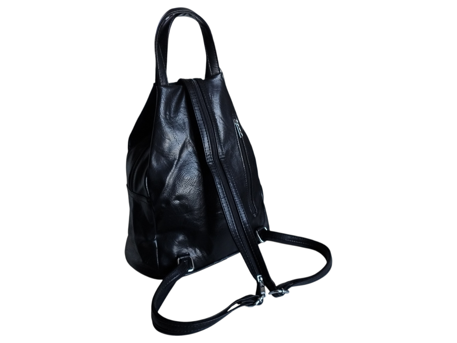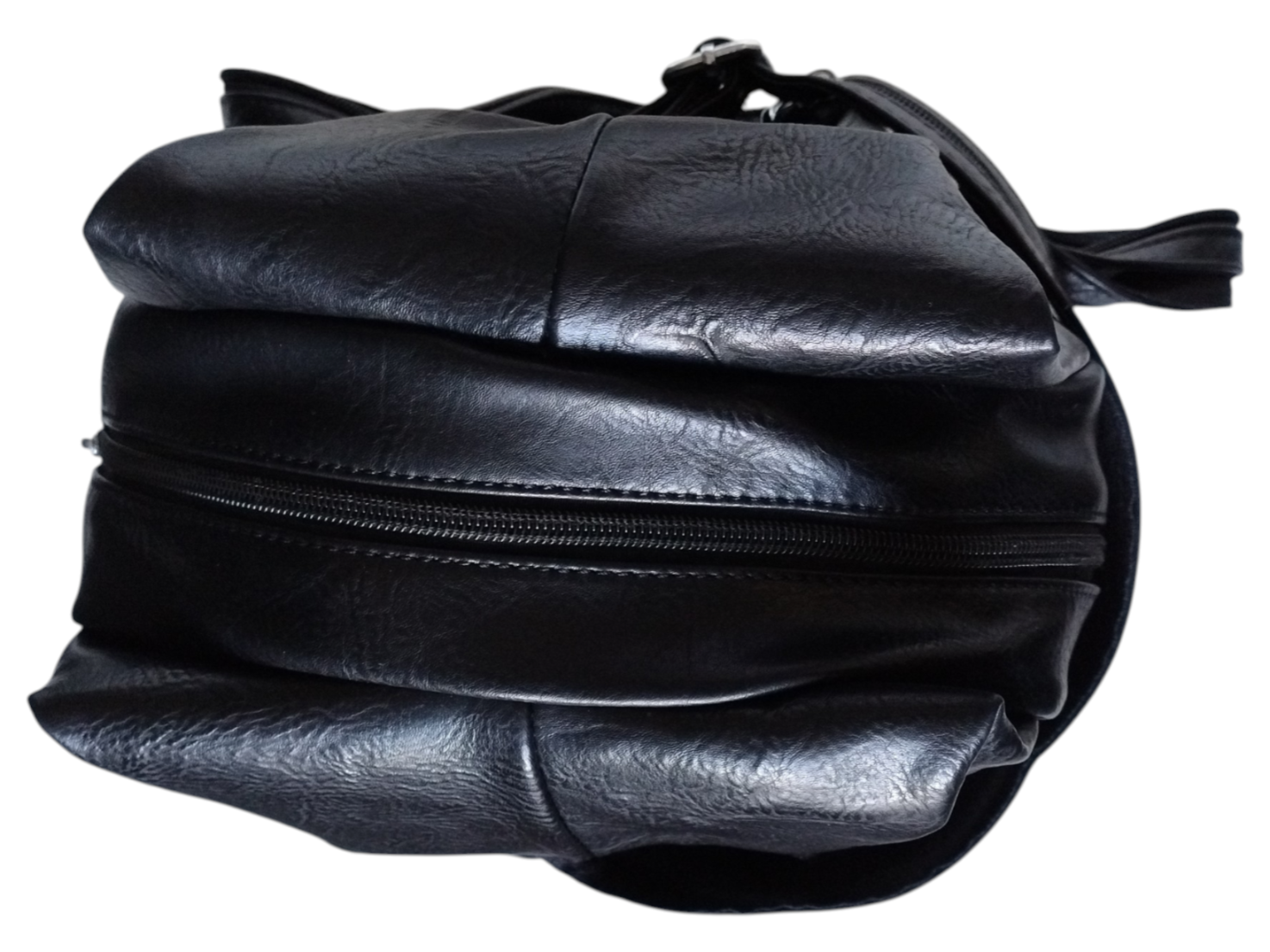Worek Na Ramię, Plecak Damski, Skóra Eko, 7 Kieszeni, Czarny, Miejski