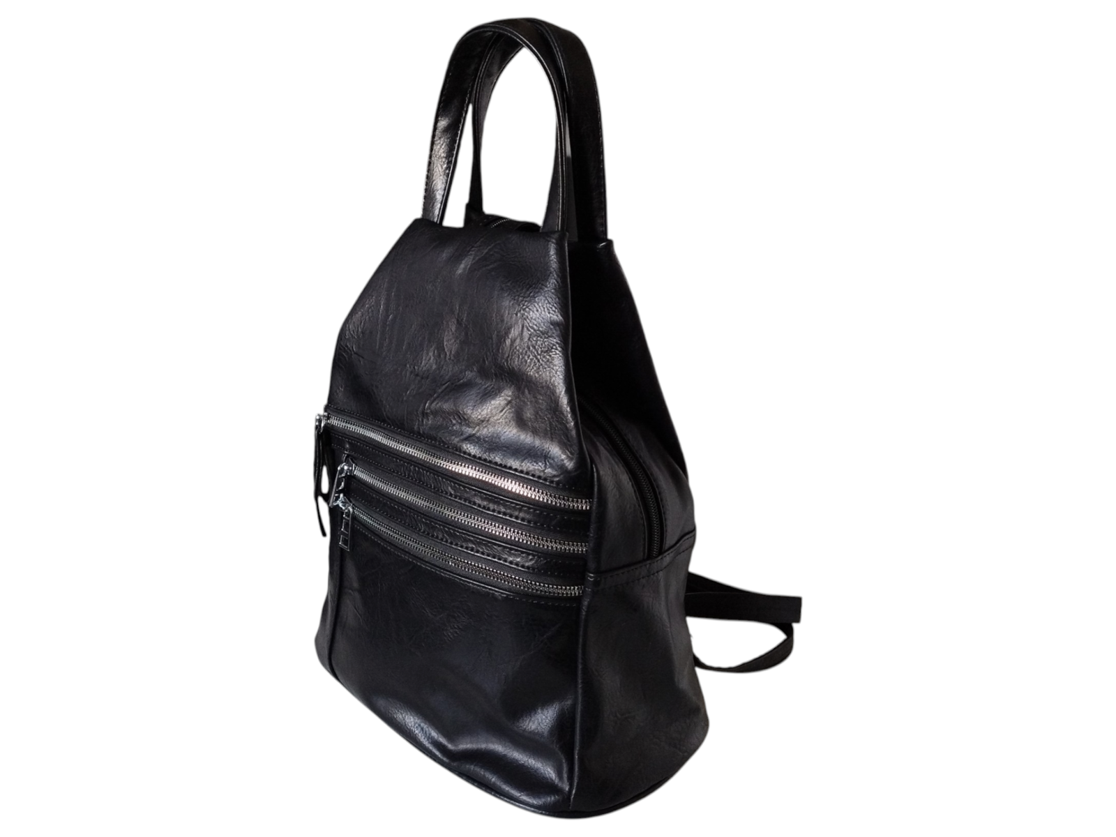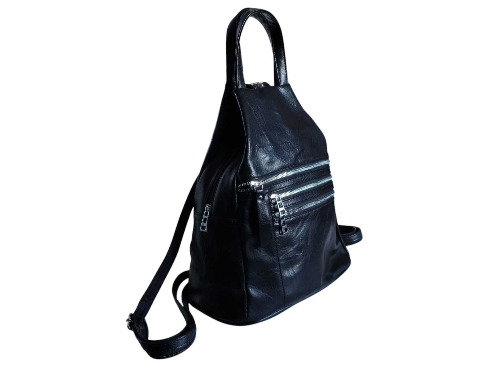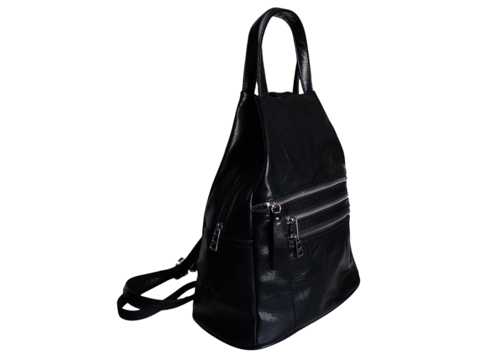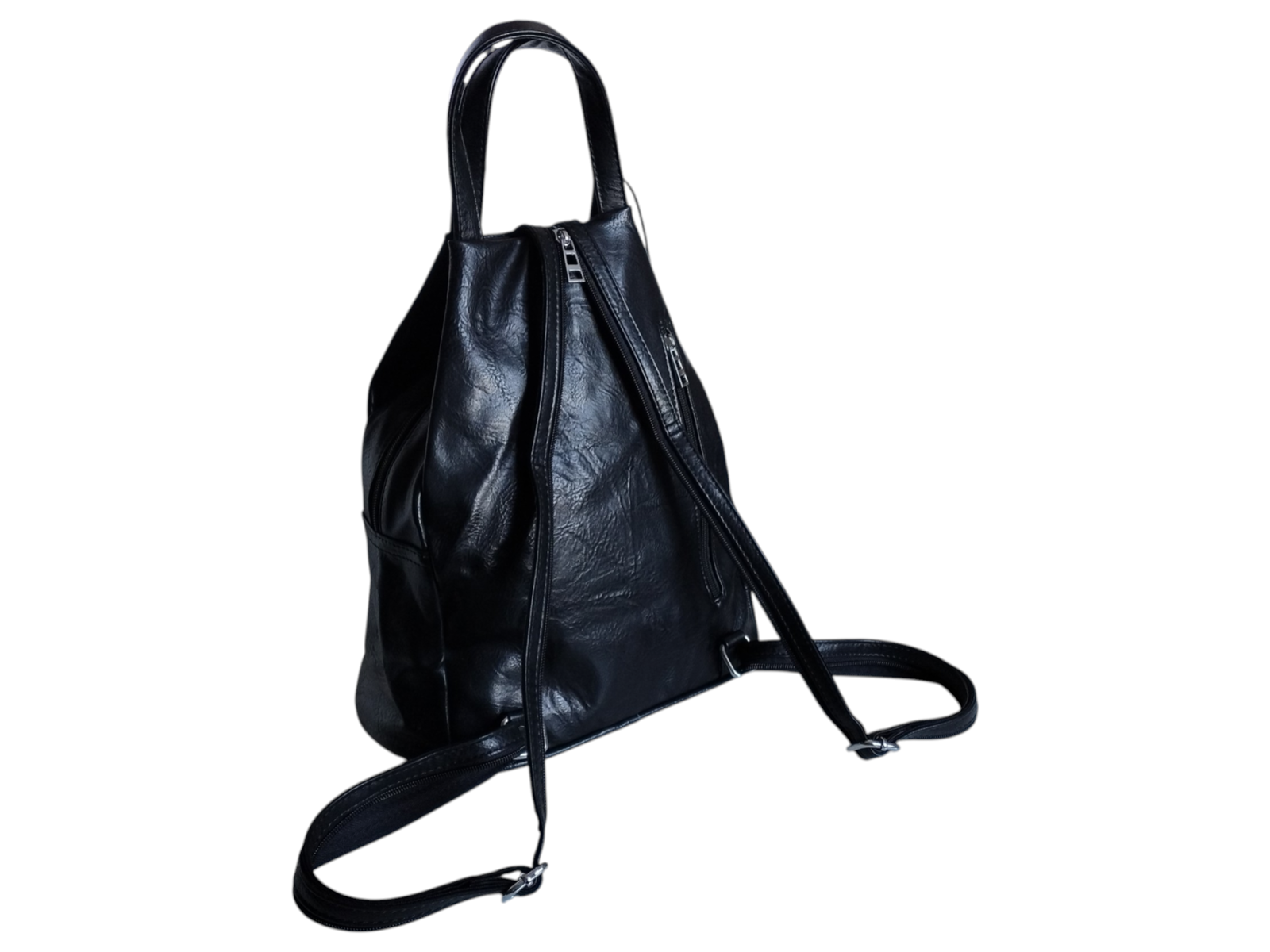 Worek Na Ramię, Plecak Damski, Skóra Eko, 7 Kieszeni, Czarny, Miejski