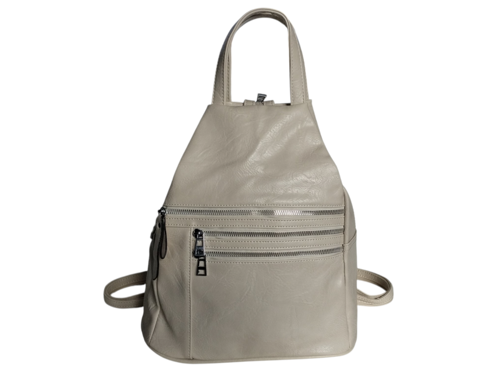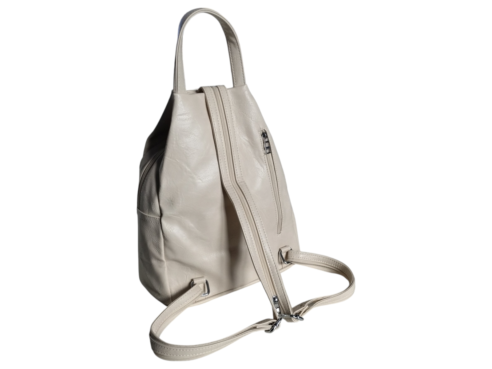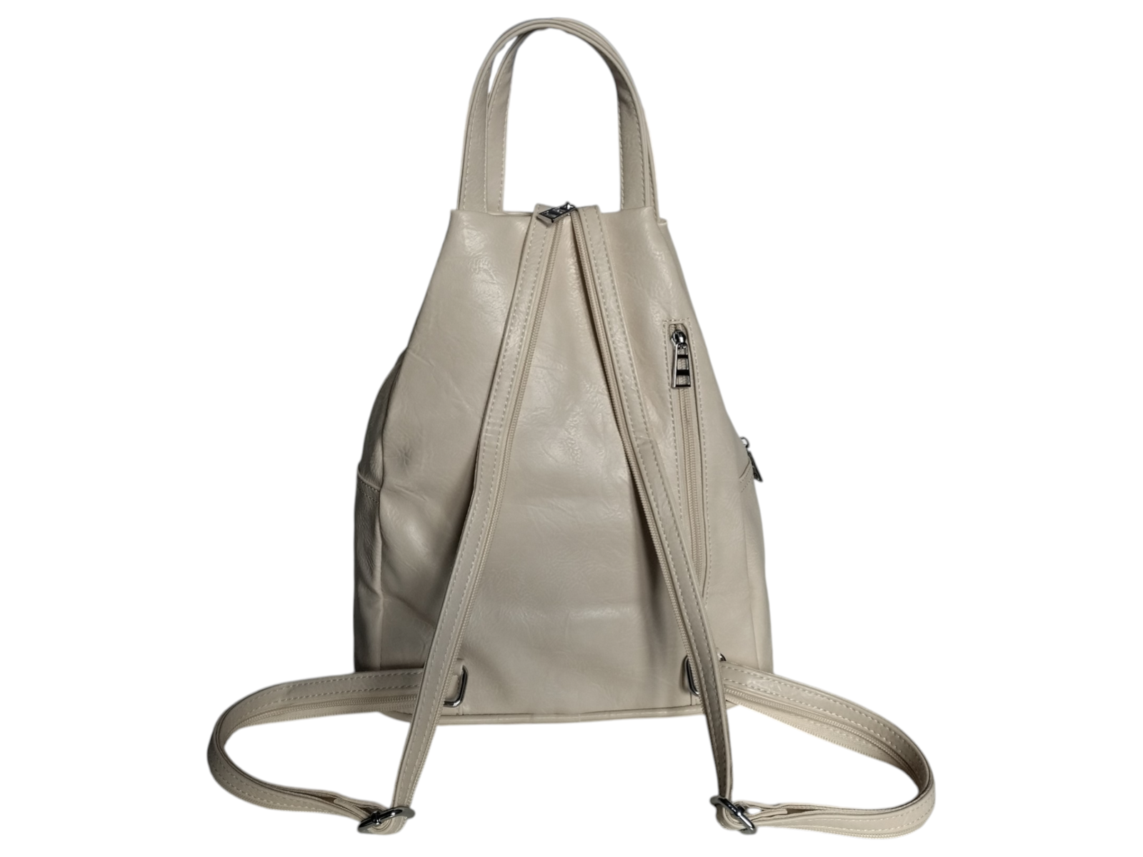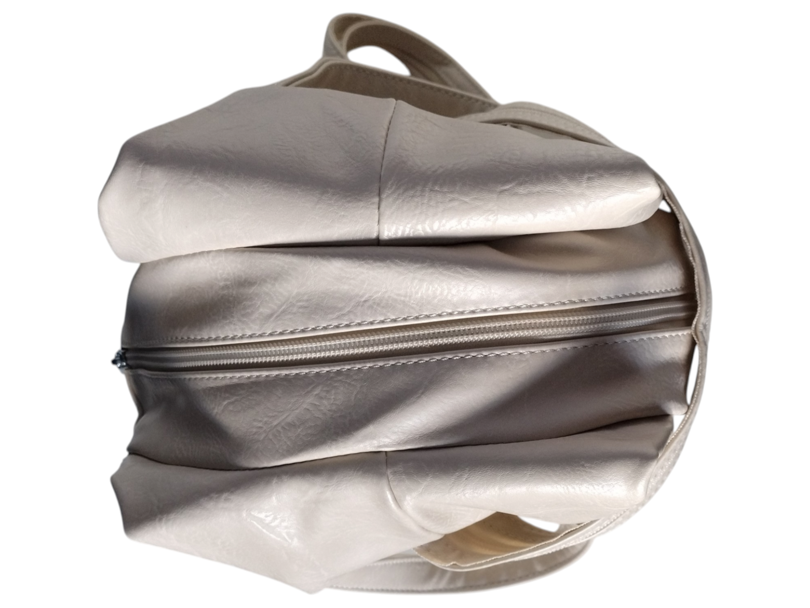 Worek, Plecak Damski Miejski na Ramię, Eko-Skóra, 7 Kieszeni, Beżowy