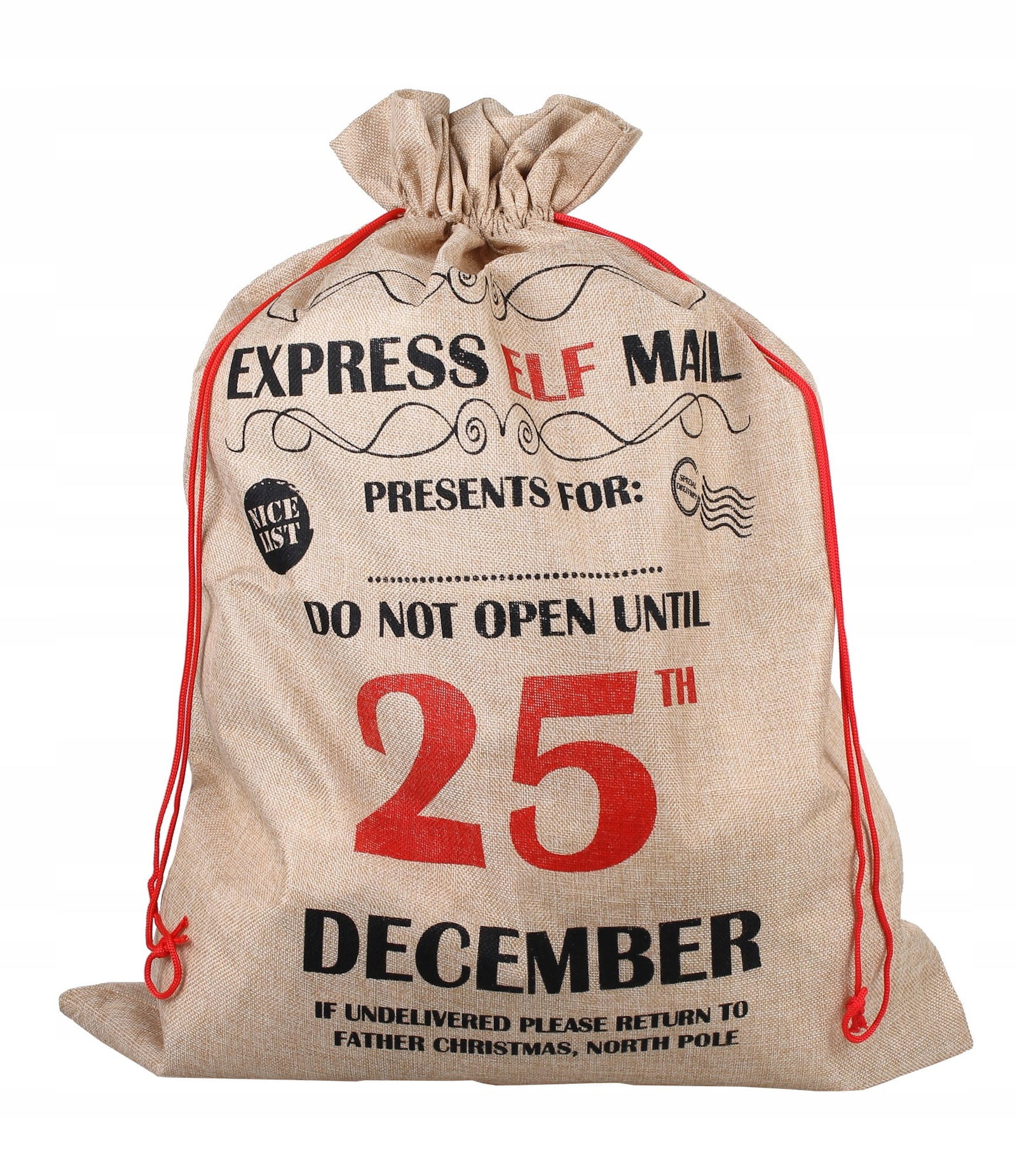 Szukasz pomysłu na to, w jaki sposób zapakować mikołajkowy lub gwiazdkowy upominek? Wykorzystaj świąteczny worek z napisem 25TH DECEMBER. Worek jest wygodny w użyciu, ponieważ w przeciwieństwie do kolorowego papieru prezentowego, na zapakowanie do niego prezentu nie potrzebujesz kilkunastu minut, a zaledwie kilku sekund. Wystarczy, że włożysz do niego upominek, ściągniesz sznurki i gotowe. Prezent zapakowany szybko i efektownie!