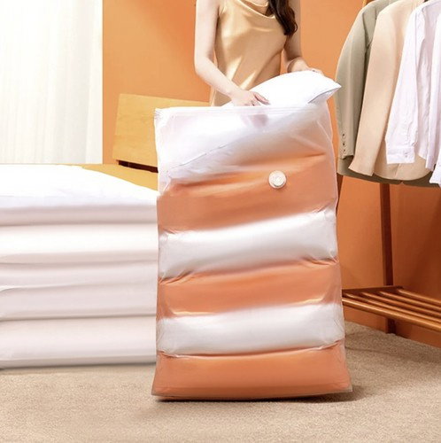 - OSZCZĘDNOŚĆ MIEJSCA - wystarczy zapakować rzeczy do worka. Worek próżniowy po odessaniu powietrza zwykłym odkurzaczem zmniejsza swoją objętość nawet do 80%. Umożliwia zaoszczędzenie dużej ilości przestrzeni. W worku możesz zmieścić np. 4 kołdry.
