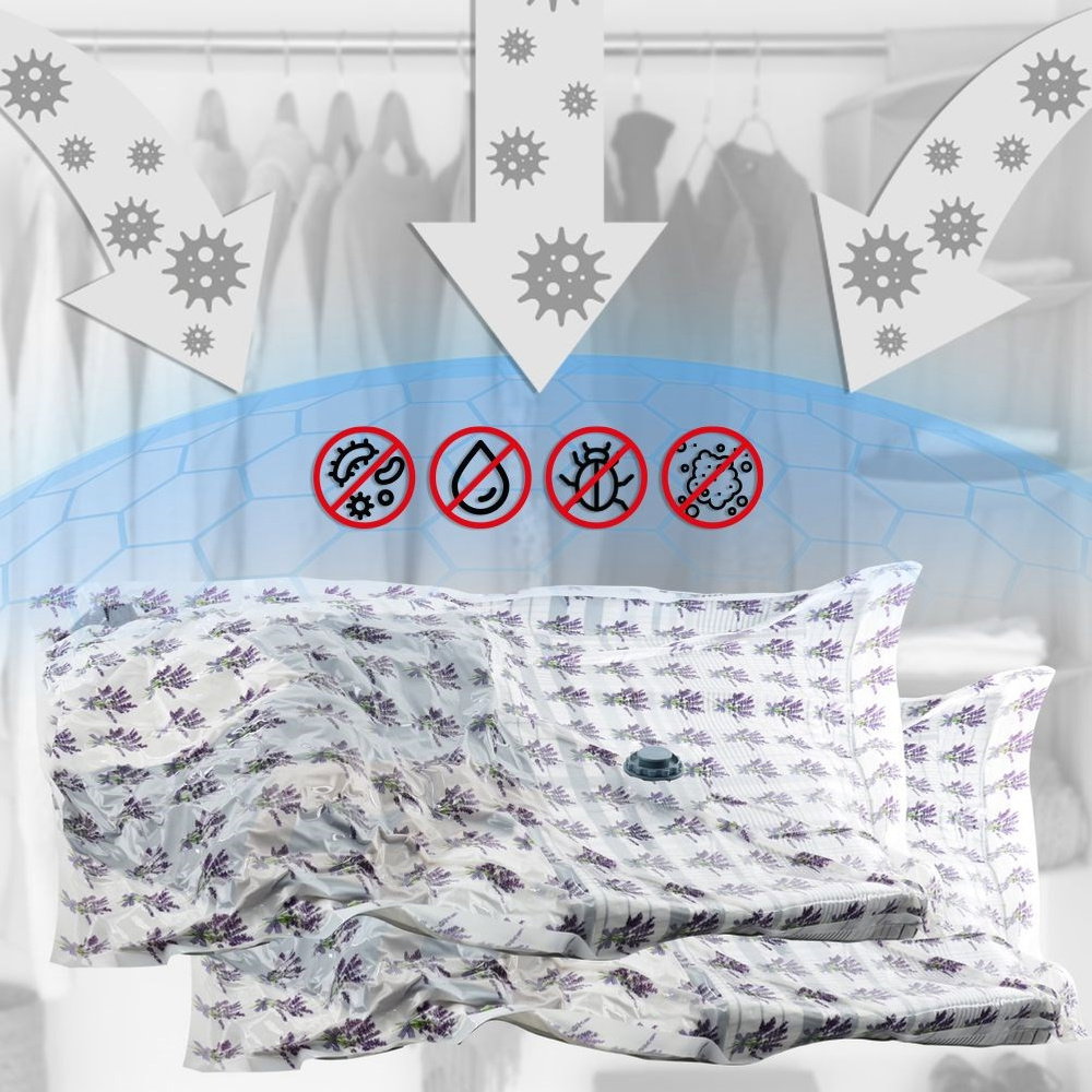 Worek próżniowy do przechowywania odzieży, maskotek czy dodatkowej pościeli. Pozwoli uzyskać więcej miejsca podczas przechowywania ubrań i tekstyliów pościelowych. Worki ochronią przechowywane produkty przed kurzem, brudem, roztoczami oraz molami. Niezwykle prosty w obsłudze. Po wypełnieniu worka rzeczami, zasysamy powietrze za pomocą odkurzacza lub pompy ssącej, dzięki czemu zmniejszamy objętość worka i zyskamy na przestrzeni.