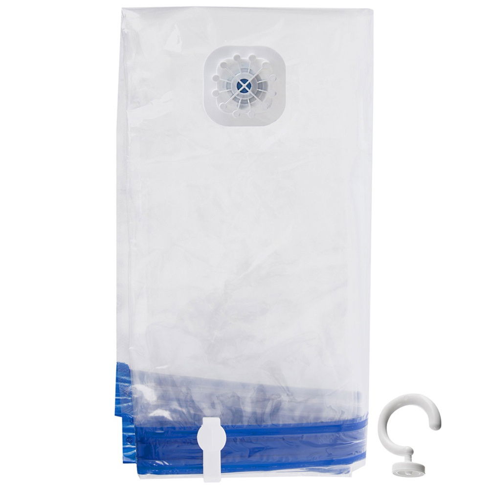 Worek próżniowy do przechowywania odzieży, maskotek czy dodatkowej pościeli, w zestawie wieszak, który umożliwi zawieszenie worka. Pozwoli uzyskać więcej miejsca podczas przechowywania ubrań i tekstyliów pościelowych. Worki ochronią przechowywane produkty przed kurzem, brudem, roztoczami oraz molami. Niezwykle prosty w obsłudze.