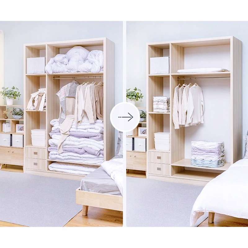 - OSZCZĘDNOŚĆ MIEJSCA - wystarczy zapakować rzeczy do worka. Worek próżniowy po odessaniu powietrza zwykłym odkurzaczem zmniejsza swoją objętość nawet do 80%. Umożliwia zaoszczędzenie dużej ilości przestrzeni. W worku możesz zmieścić np. 4 kołdry.