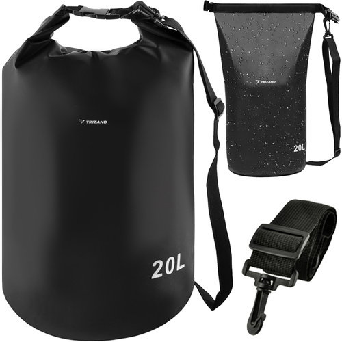 Worek wodoszczelny 20L Trizand czarny Dry Bag wodoodporny plecak na kajak SUP