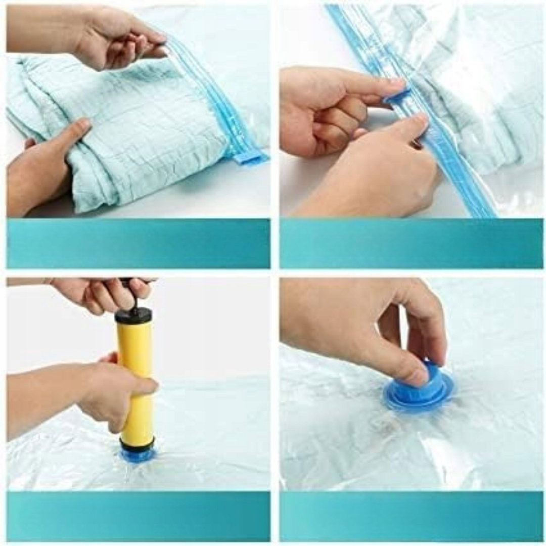 - Uniwersalna kompatybilność: zestaw 2 worków próżniowych o wymiarach 100 × 80 cm jest odpowiedni do przechowywania ubrań, poduszek i innych tekstyliów. Może być używany z większością odkurzaczy, co umożliwia szybkie i skuteczne usunięcie powietrza.