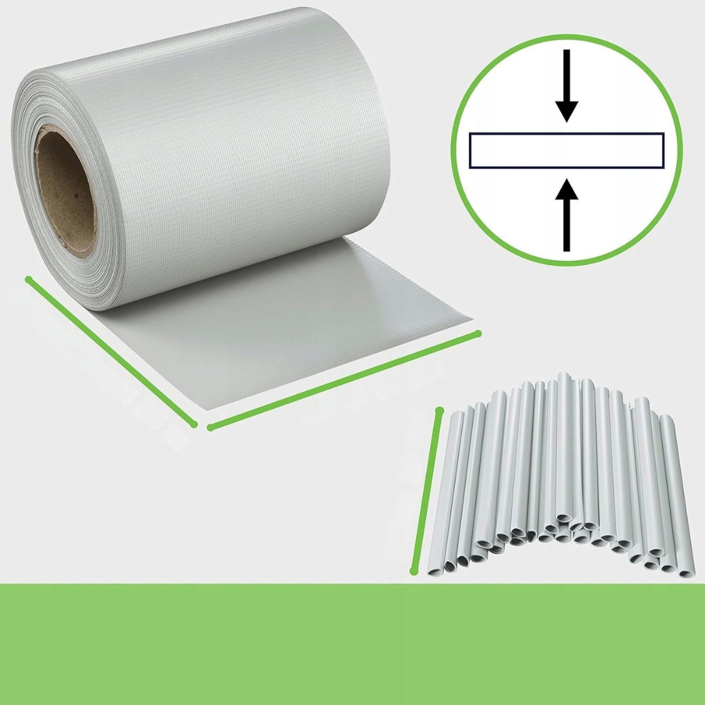 Taśma pasuje do wszystkich standardowych ogrodzeń z podwójnymi szczebelkami. Może być łatwo wpleciona również w istniejące ogrodzenia, nadając im nowoczesny, schludny wygląd. To funkcjonalne rozwiązanie dla każdego, kto ceni prywatność i trwałość bez kompromisów.