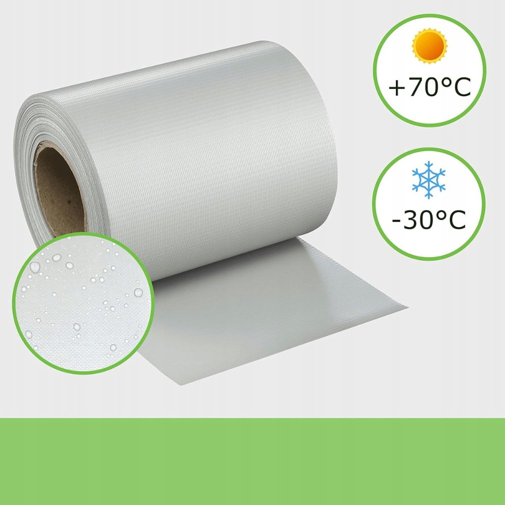 Wykonana z wysokogatunkowego PVC taśma jest odporna na promieniowanie UV, opady, mróz oraz uszkodzenia mechaniczne. Nie blaknie, nie pęka i nie wymaga żadnych zabiegów konserwacyjnych – wystarczy od czasu do czasu opłukać ją wodą.