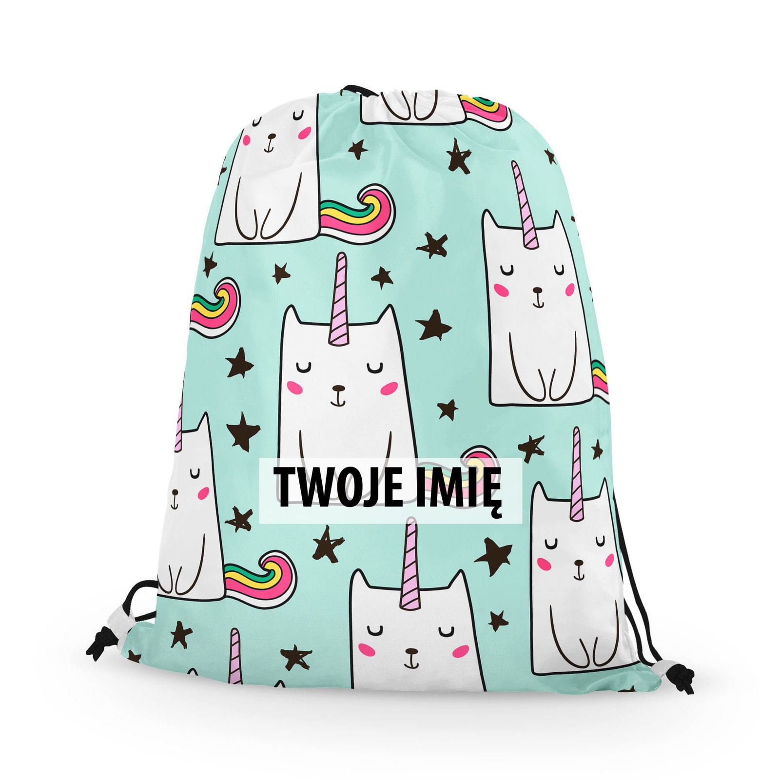 - Pamiętaj, że kupujesz worko-plecak z indywidualnym napisem.