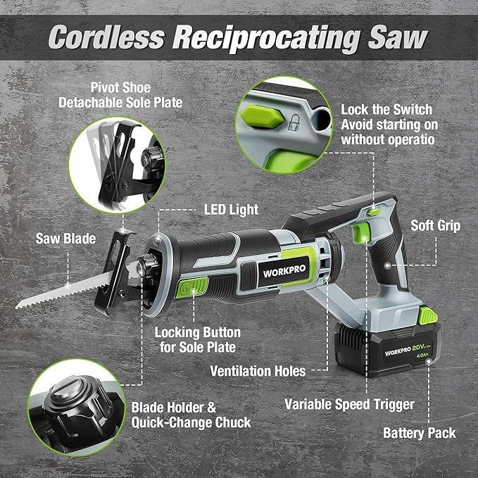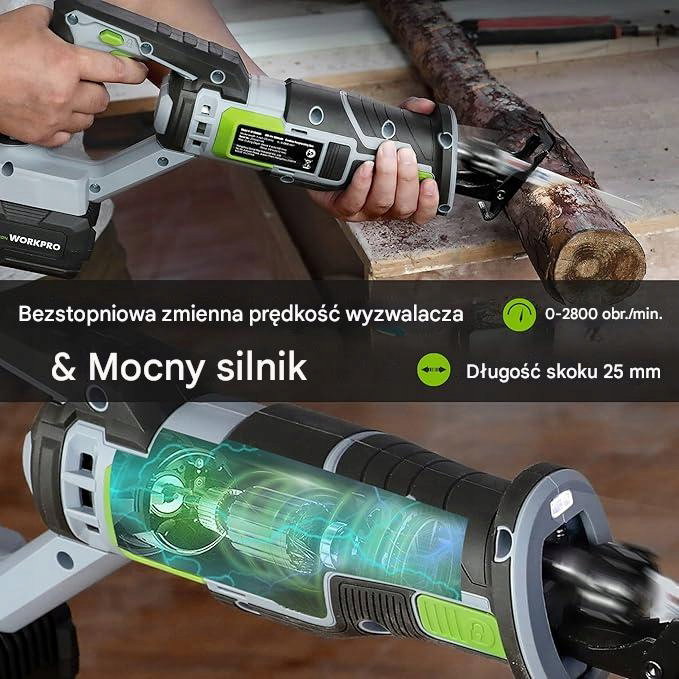 WORKPRO Pilarka szablasta akumulatorowa , 20 V, 4,0 Ah, do drewna i metalu