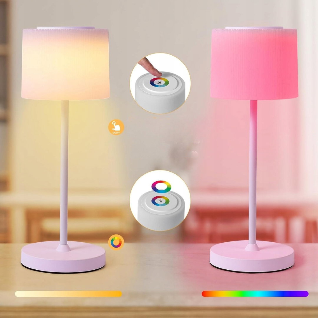 WOWDSGN lampa stołowa LED z funkcją ładowania i stacją ładującą – bezprzewodowa lampa stołowa do użytku na zewnątrz z funkcją RGB i płynną regulacją jasności – lampa z wbudowanym akumulatorem o pojemności 4000 mAh.