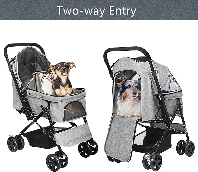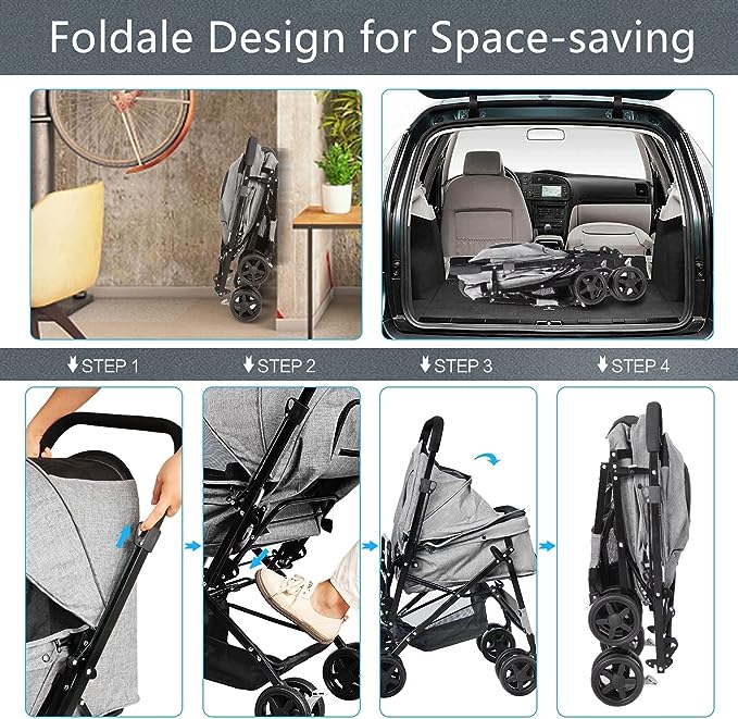 - Łatwy w montażu: ten wózek dla zwierząt można zmontować w ciągu kilku minut, korzystając z instrukcji instalacji . Wystarczy złożyć wózek, naciskając przycisk na rączce.