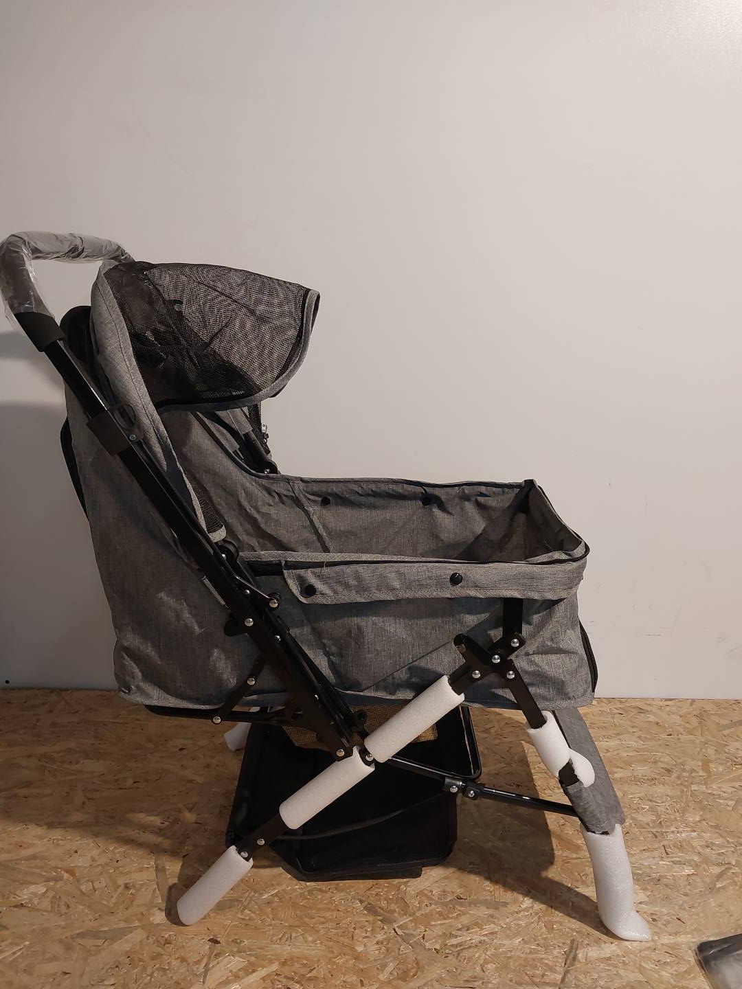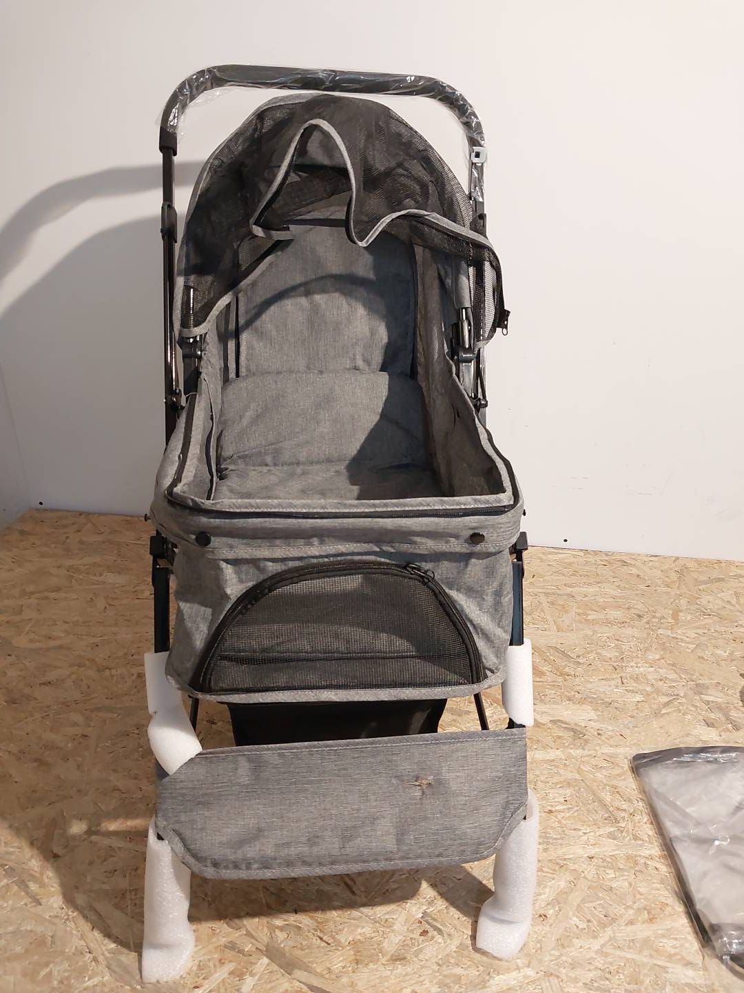- Składany wózek dla zwierząt jest również wyposażony w folię przeciwdeszczową, dzięki czemu nie musisz się martwić, że Twój zwierzak zmoknie podczas deszczu.