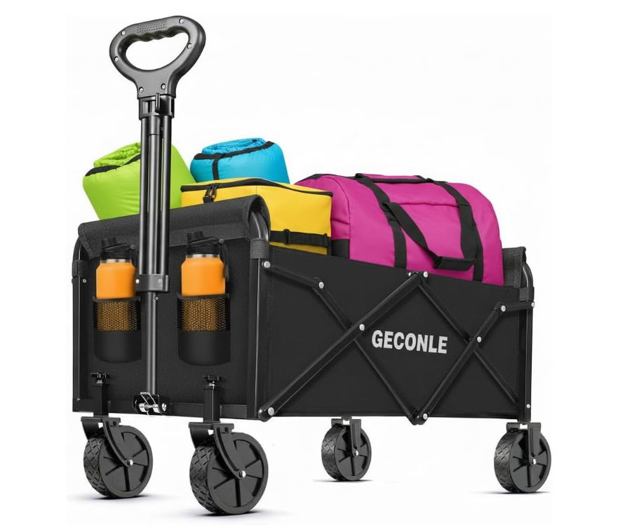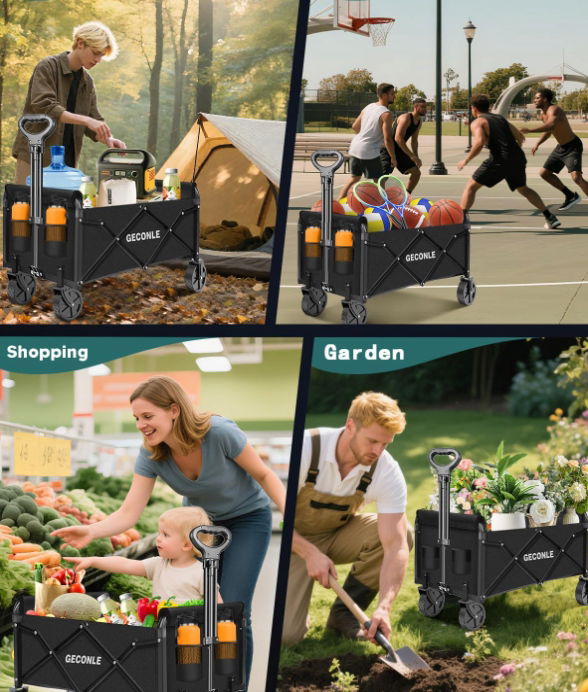 - ✴️【DUŻA KAPACYTET & LĘGKA KONSTRUKCJA】: Trolley GECONLE wyposażony jest w wysokiej jakości ramę metalową, która może ność do imponującego 80 kg. Dwa siatkowe uchwyty na kubeczki chronią napoje bezpiecznie. A najlepsza część? Może być bez trudu zapakowany w bagażnik samochodu lub w ciasny kąt, a można go łatwo podnieść tylko jedną ręką.