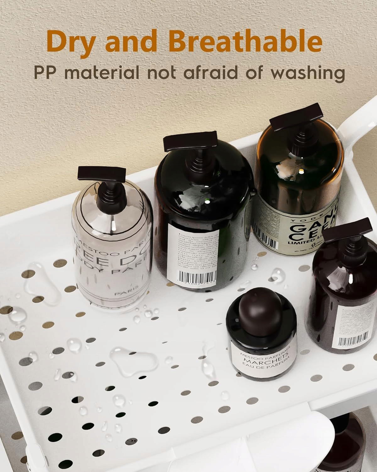Wytrzymała i stabilna konstrukcja – ten wózek jest lekki, trwały, odporny na korozję i wodoszczelny. Składa się z wysokiej jakości metalowej ramy i stabilnych półek ABS, które zapewniają ochronę podczas przechowywania.