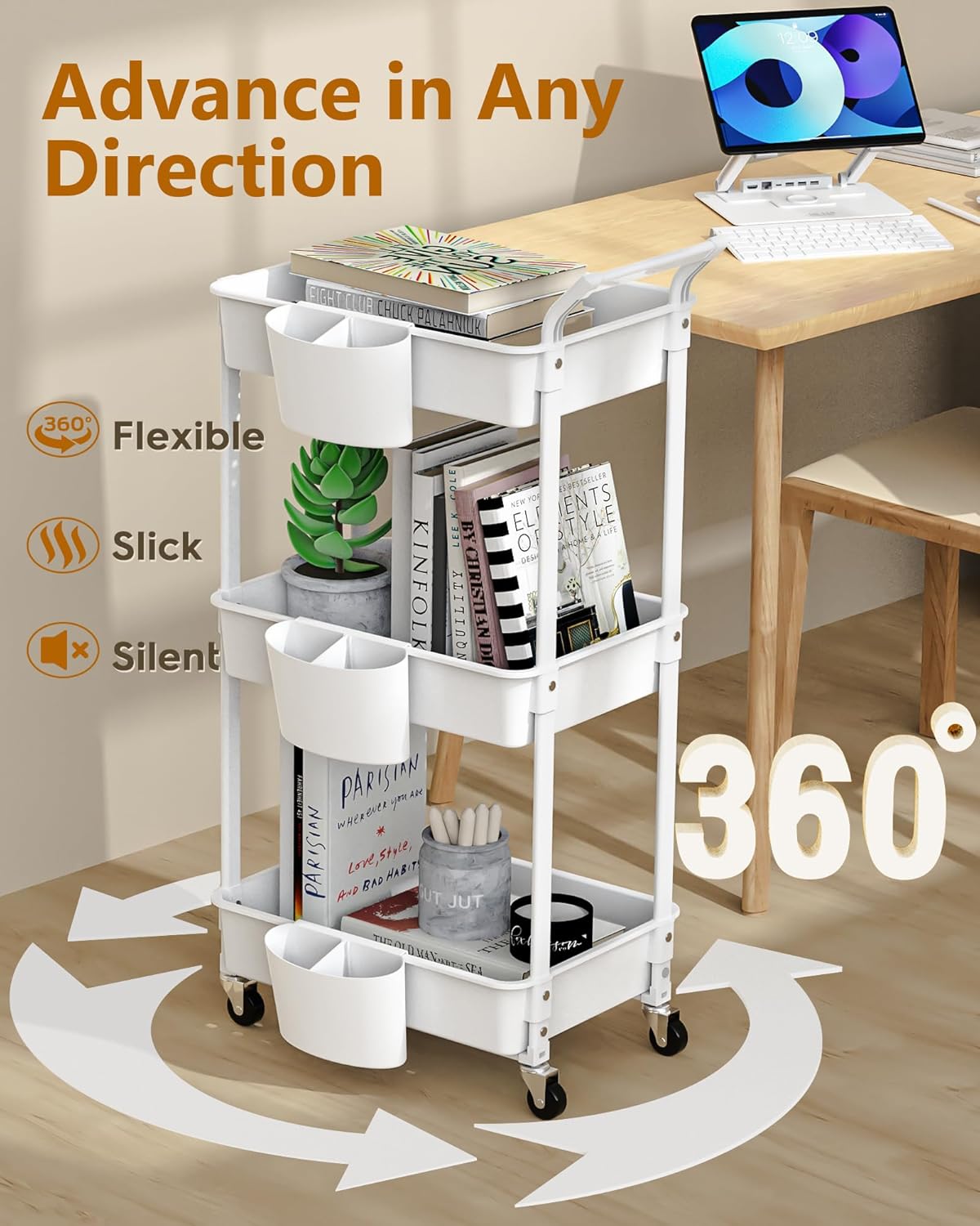 Wielofunkcyjny trzypoziomowy wózek - trzypoziomowy wózek HBTower zapewnia dużo miejsca na różne przedmioty. Może być używany jako wózek na narzędzia, wózek do makijażu, wózek na książki i organizer.